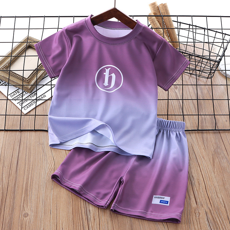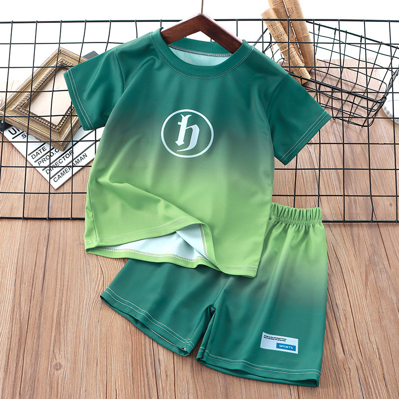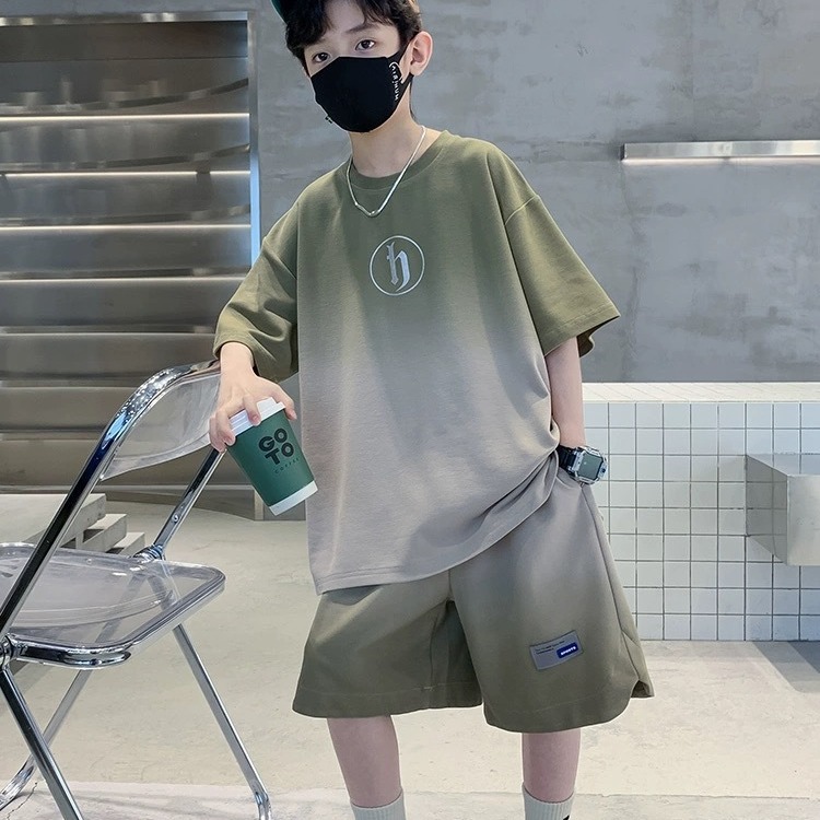 儿童夏季短袖套装男童夏装新款中大童男孩衣服渐变短袖短裤