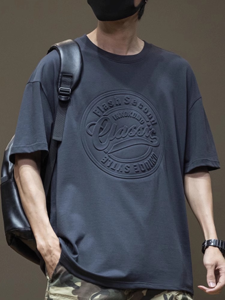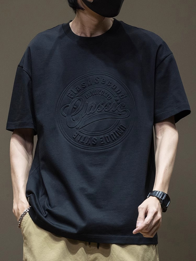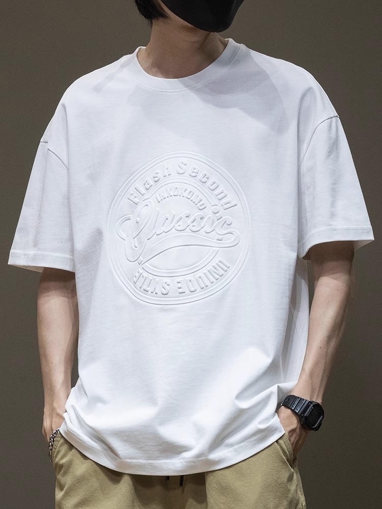 原版潮牌美式重磅260克纯棉双纱立体字母短袖T恤男宽松大码夏季潮