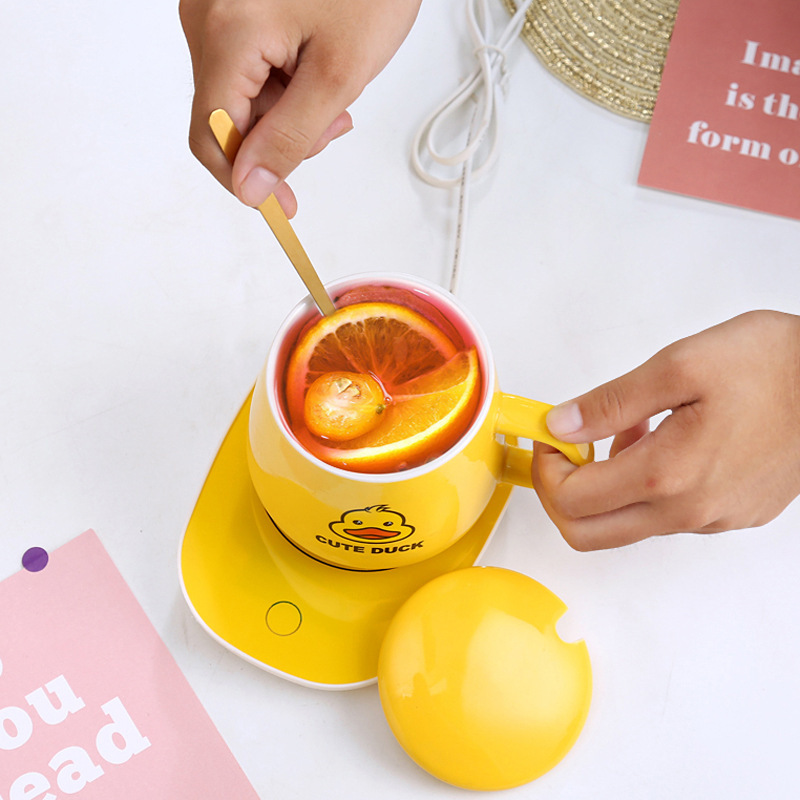 55度恒温杯陶瓷可爱卡通小黄鸭暖暖杯办公室咖啡牛奶保温陶瓷杯