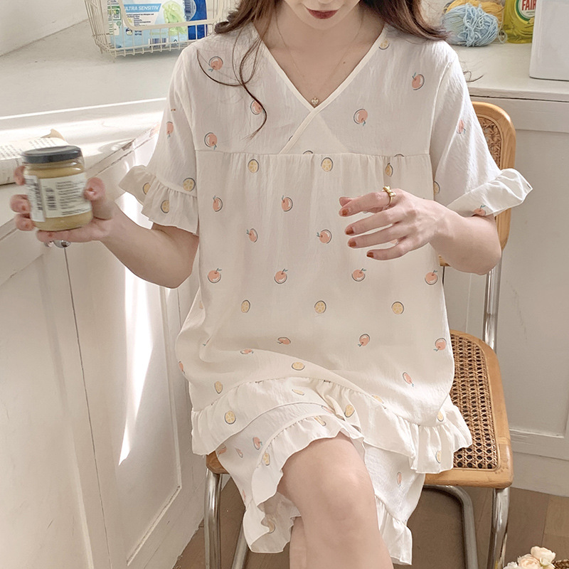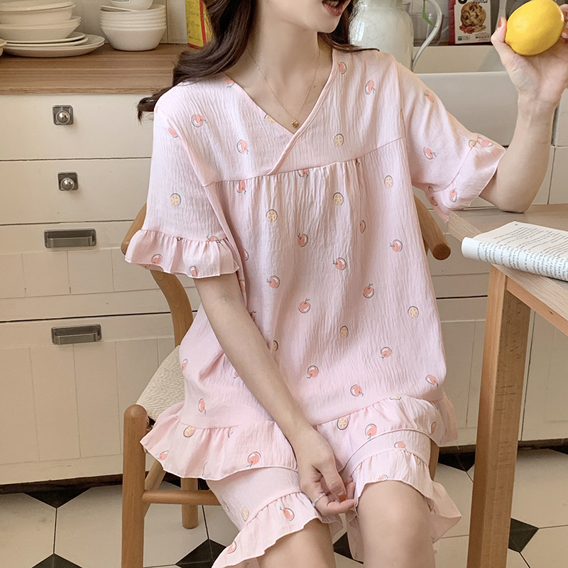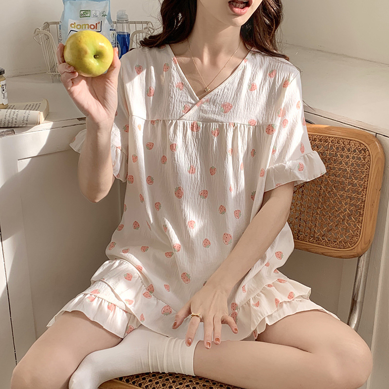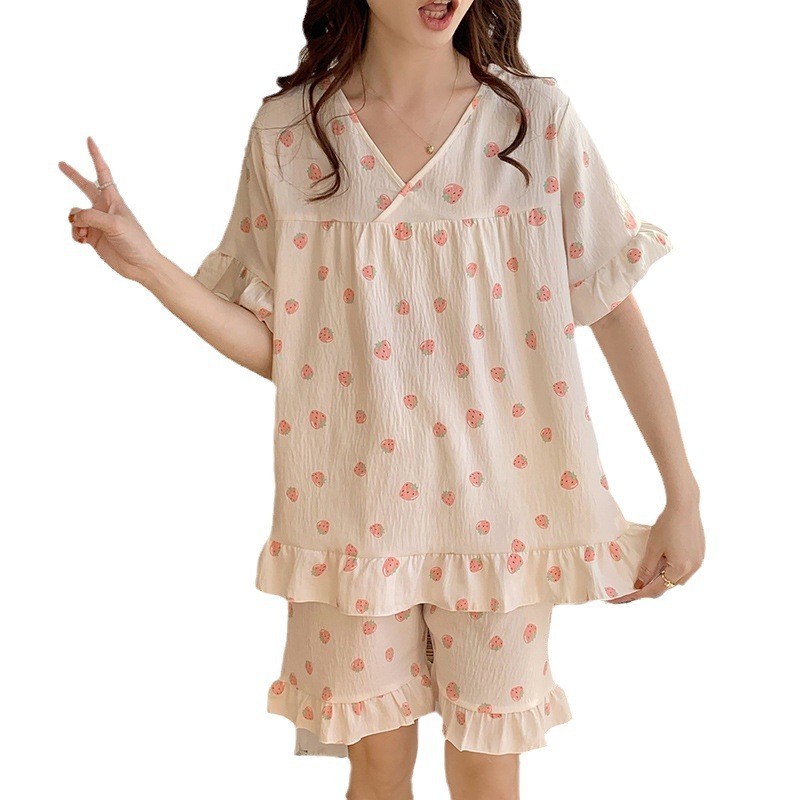 夏天云朵棉睡衣女士长袖薄款纯棉绸套装韩版可爱人造棉宽松家居服