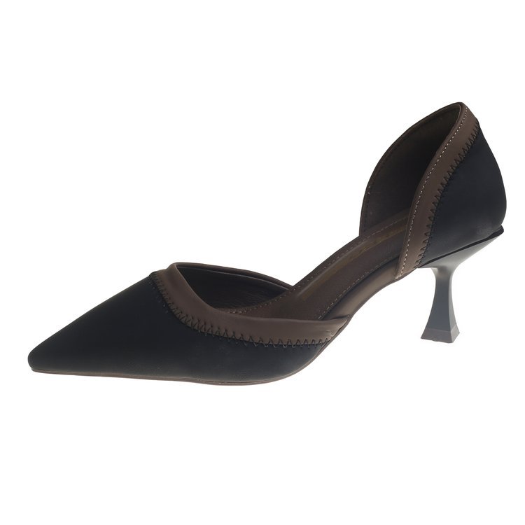 春夏尖头细跟法式气质高跟单鞋女高拼色工作职业中空单鞋女