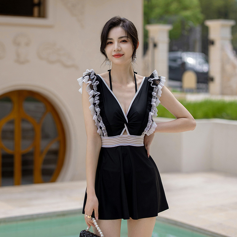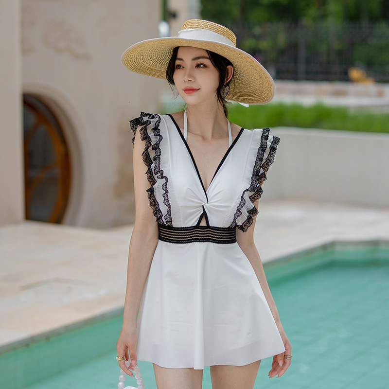汐歌儿连体泳衣女新款韩版女士连体裙式遮肚显瘦泡温泉泳装女