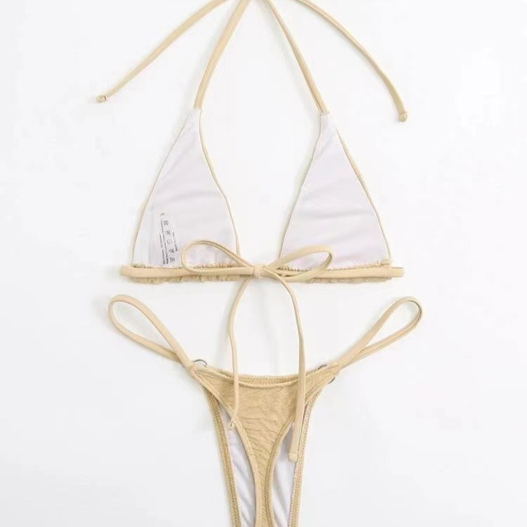 新款泳衣女欧美泳装分体两件套纯色高腰性感特殊布料比基尼