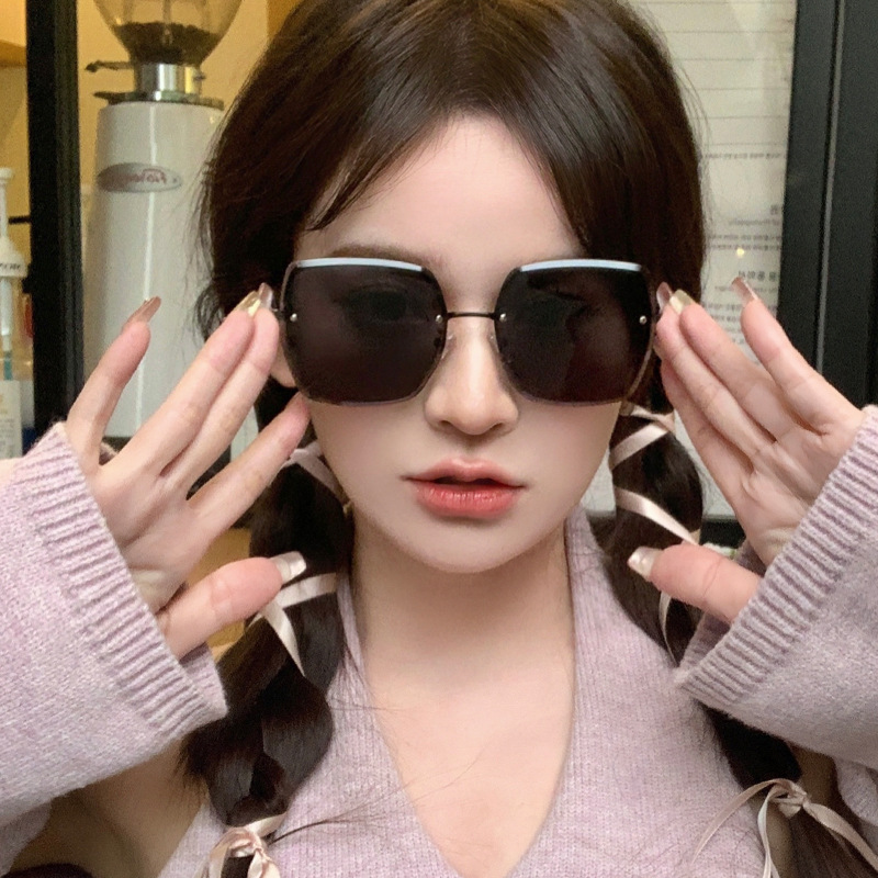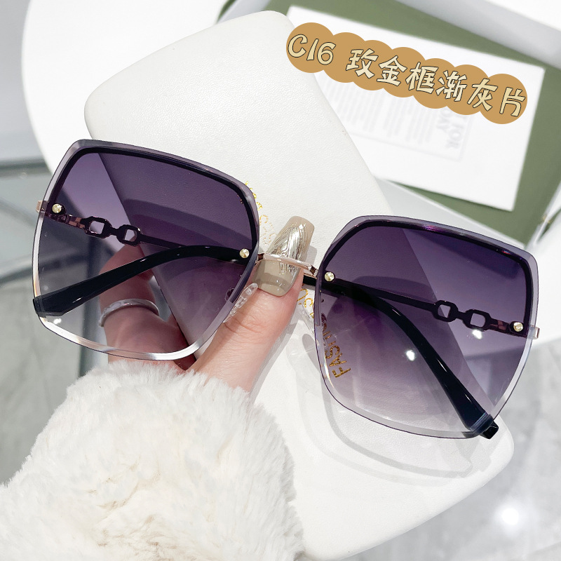 新款半框切边太阳镜女大框显瘦显脸小防紫外线防晒墨镜58107