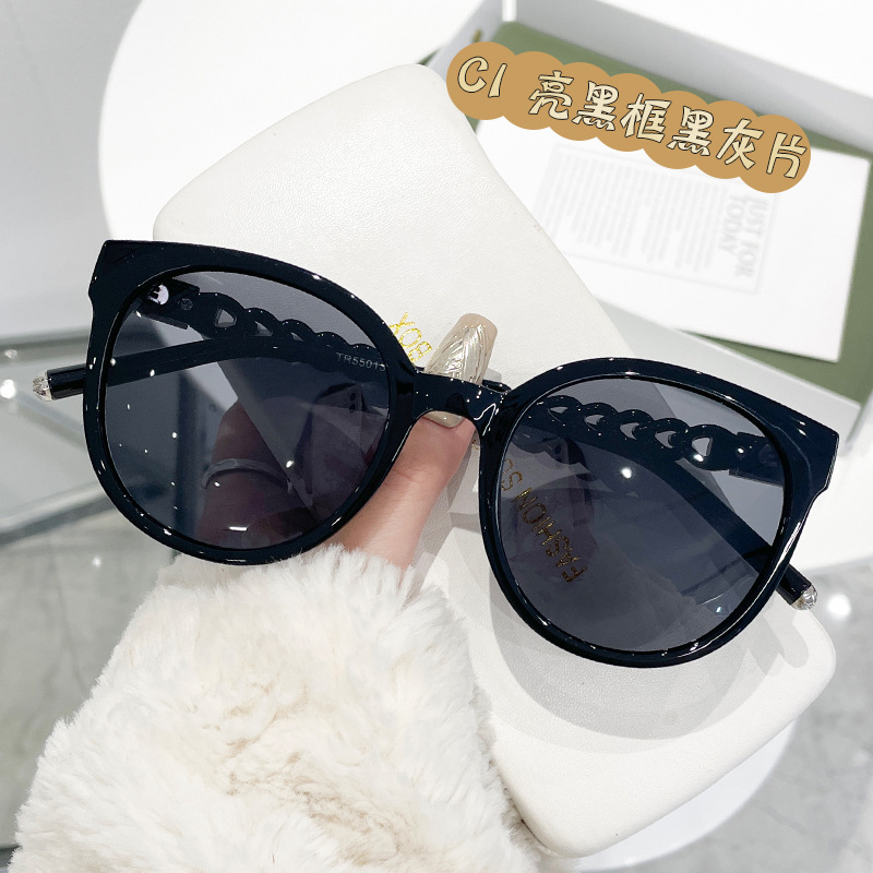 新款复古偏光太阳眼镜圆框麻花腿墨镜大脸显瘦防紫外线女士55013