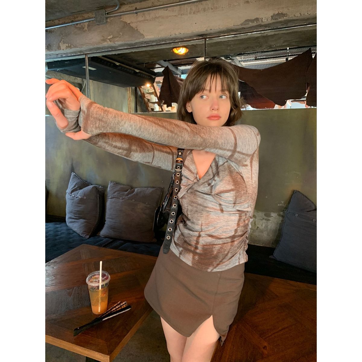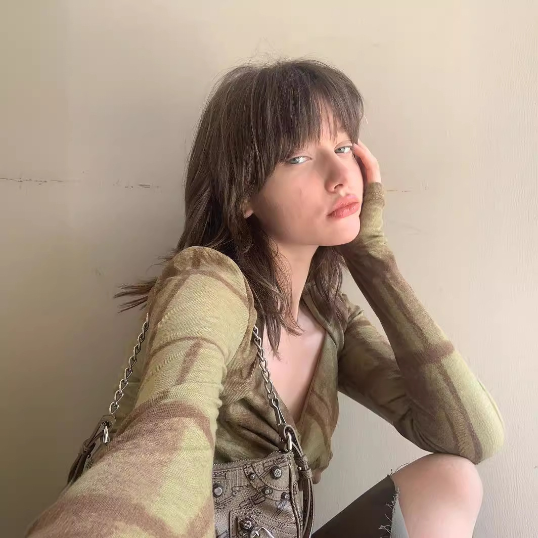 y2k美式复古千禧辣妹上衣性感晕染印花撞色防晒长袖修身显瘦T恤女