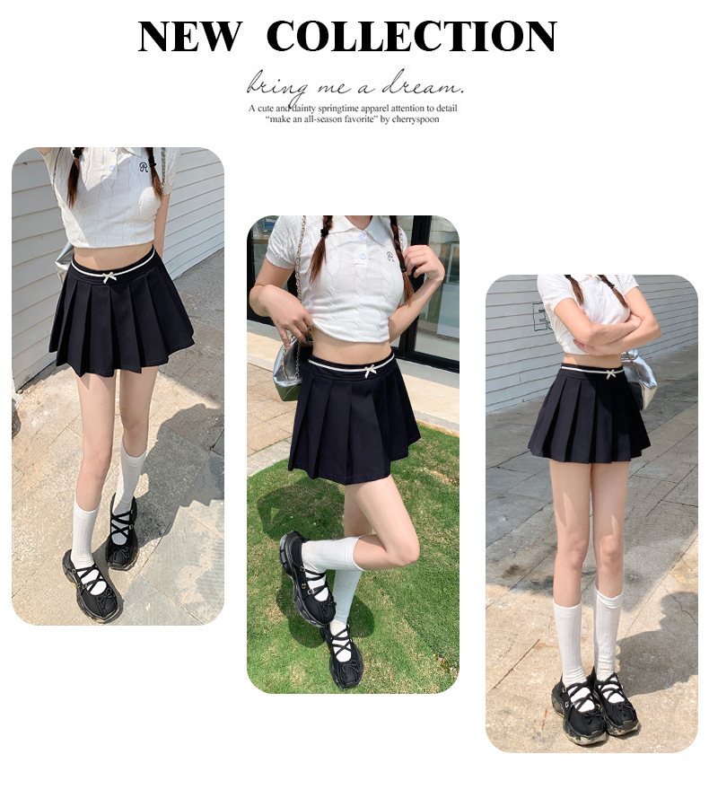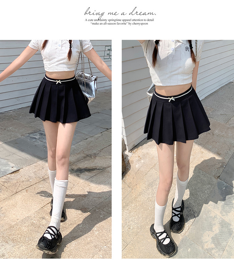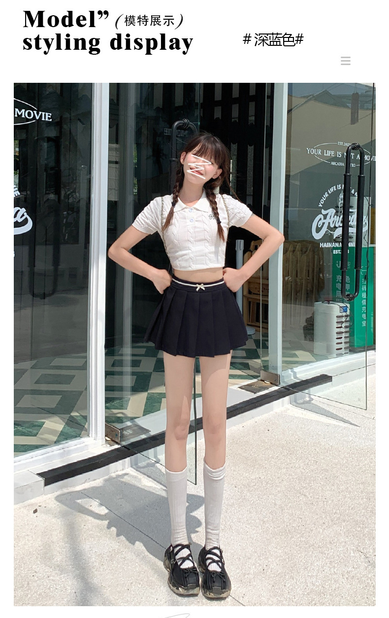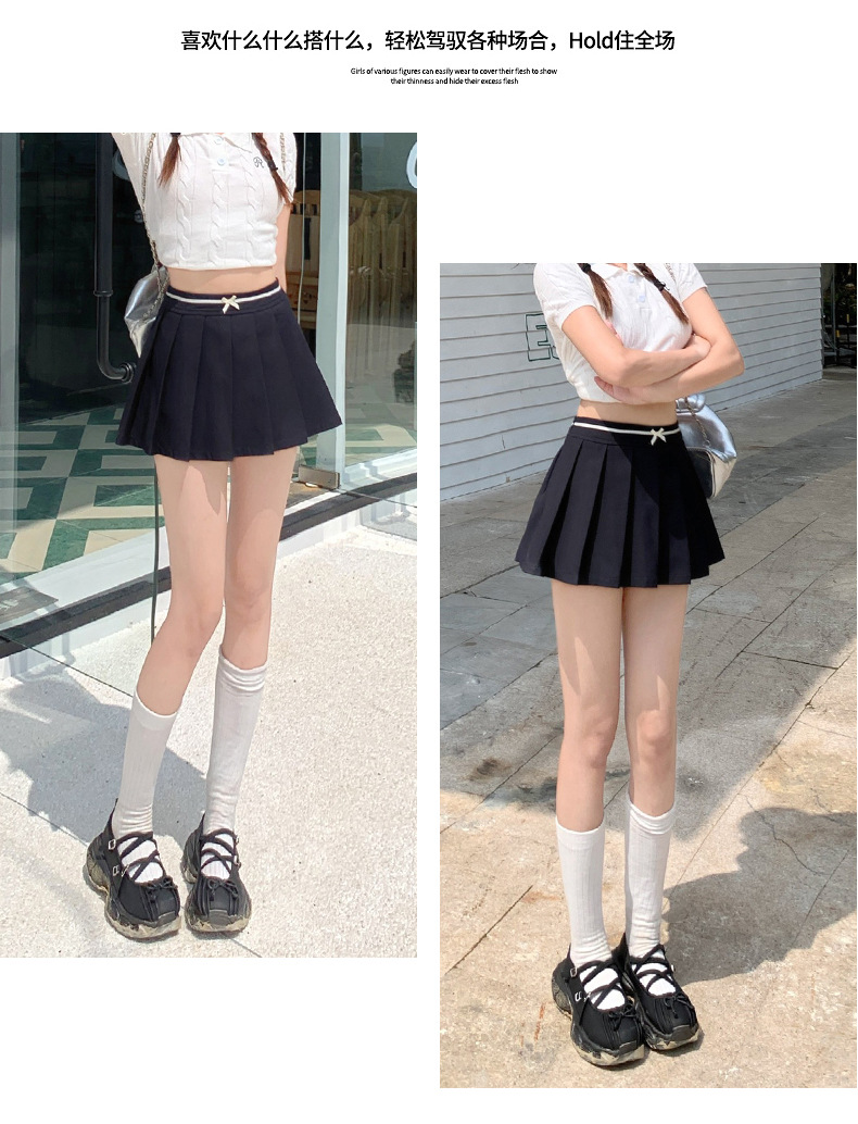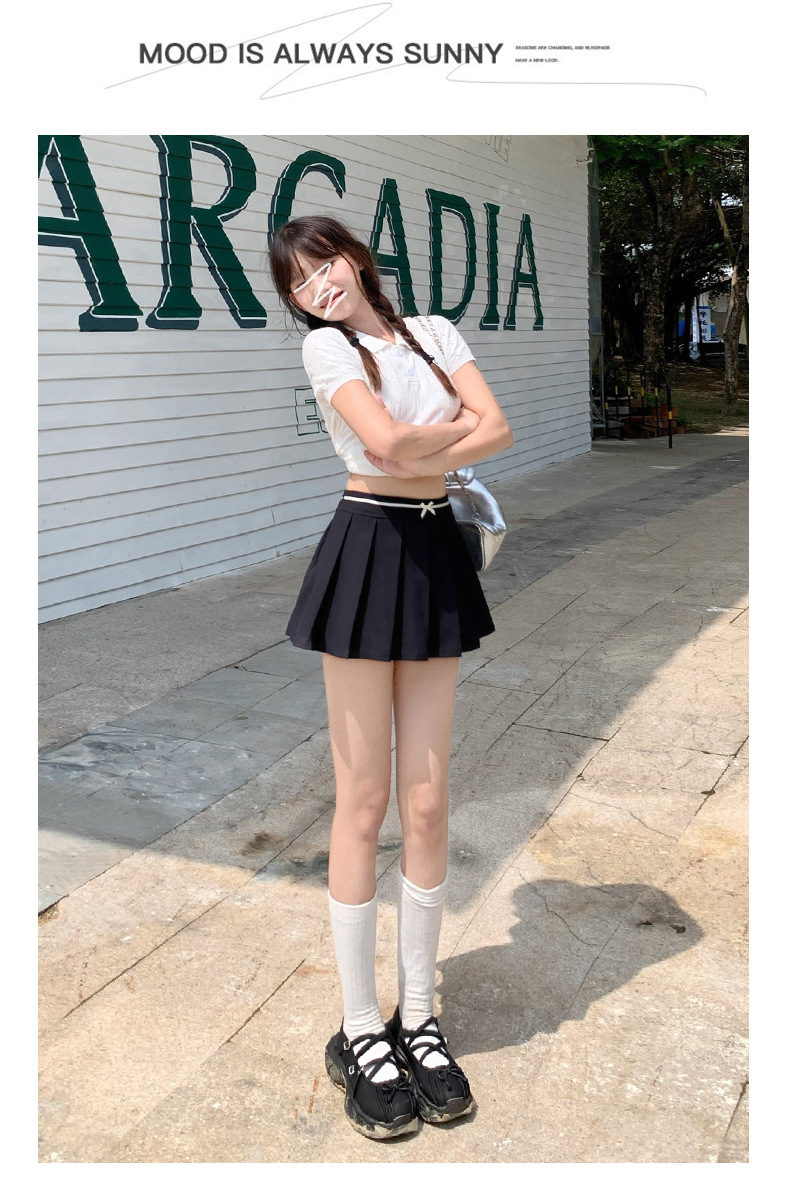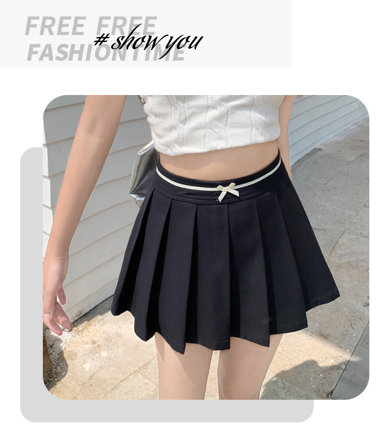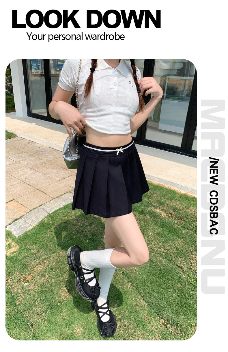 年夏季新款美式复古蝴蝶结百褶短裙女学院风半身裙百搭