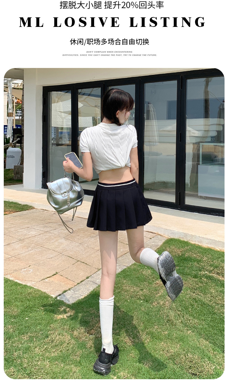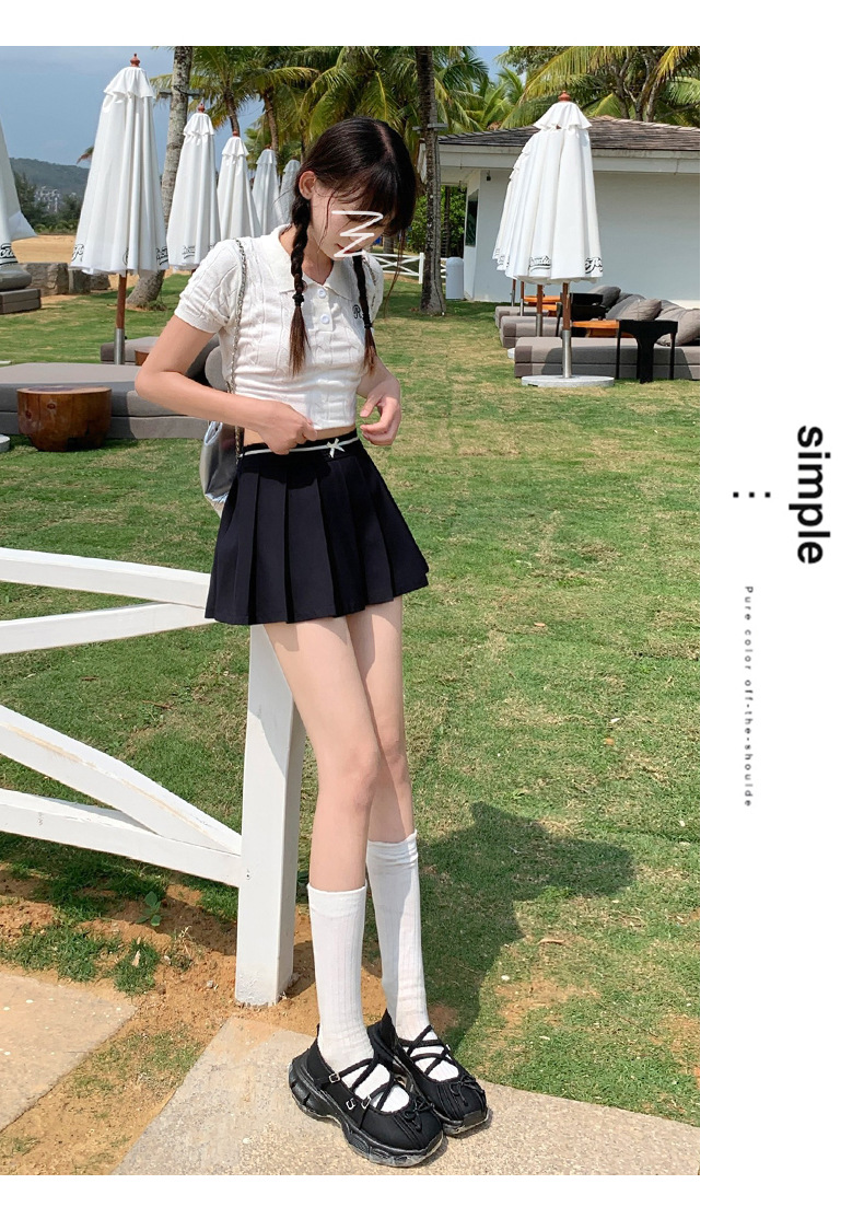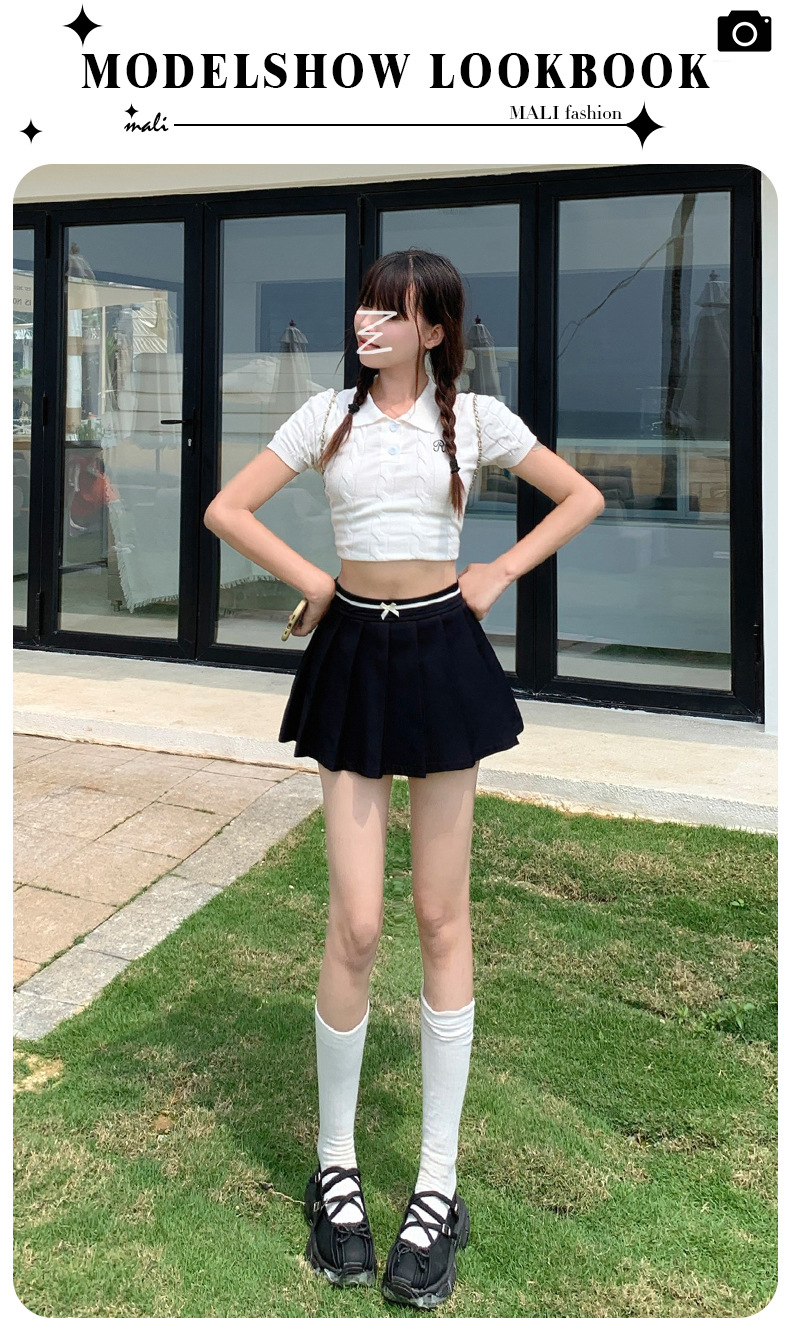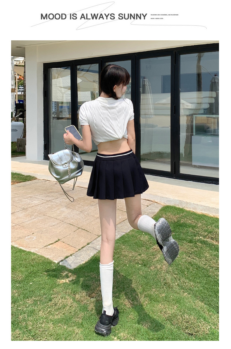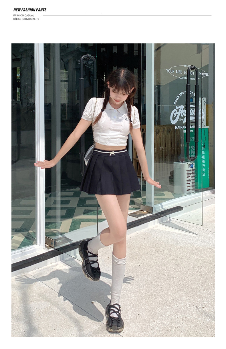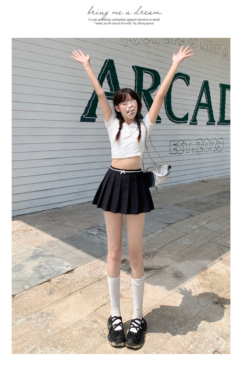 年夏季新款美式复古蝴蝶结百褶短裙女学院风半身裙百搭