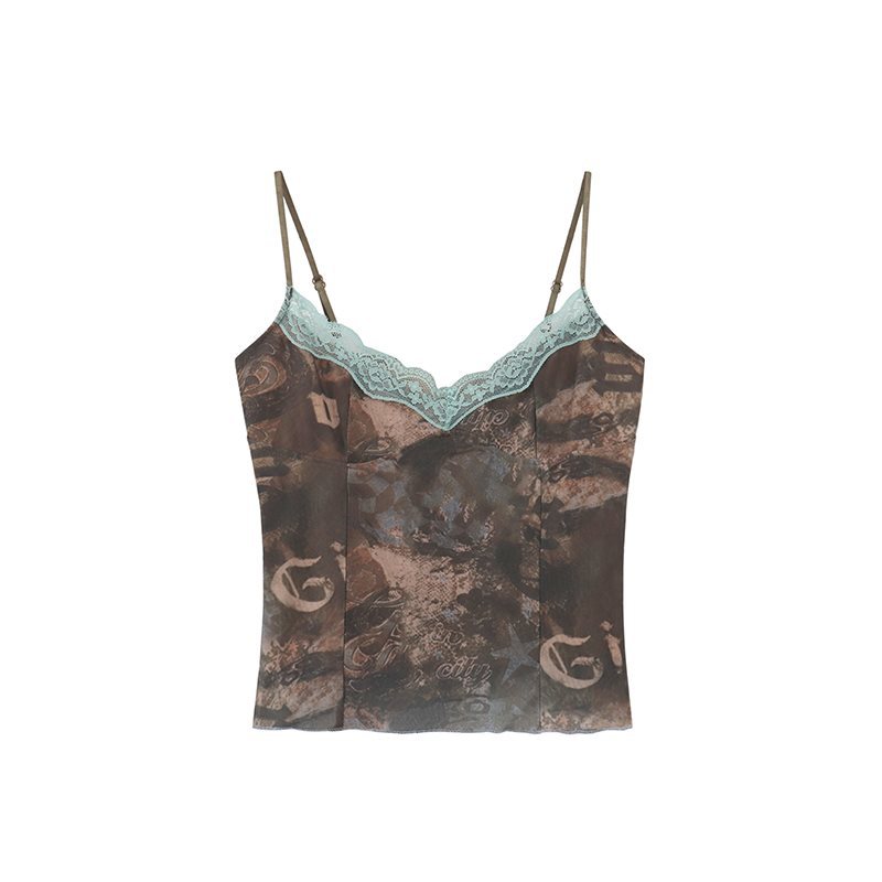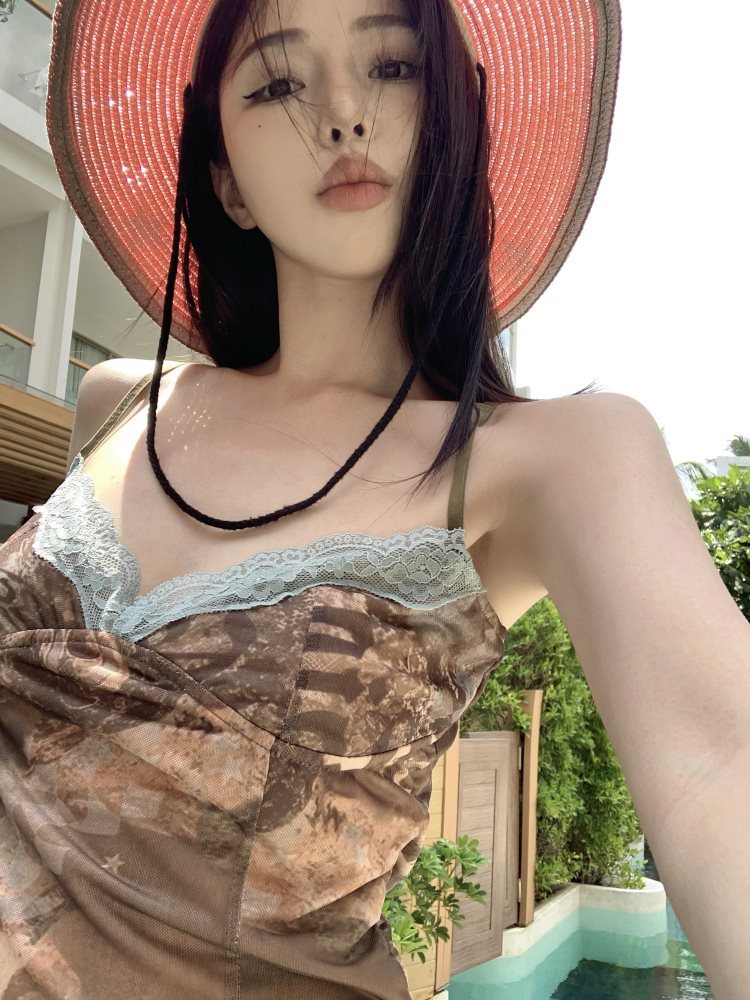 欧美热辣小吊带背心女装棕色美式复古设计感辣妹内搭外穿性感上衣