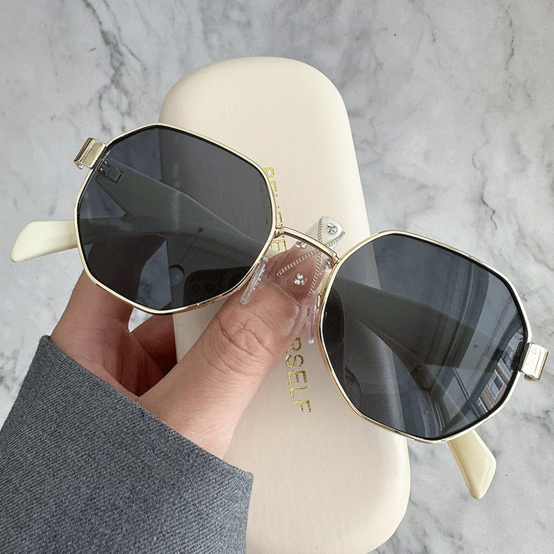 夏季新款金属多边形渐蓝色太阳镜显脸小男女开车遮阳防紫外线墨镜