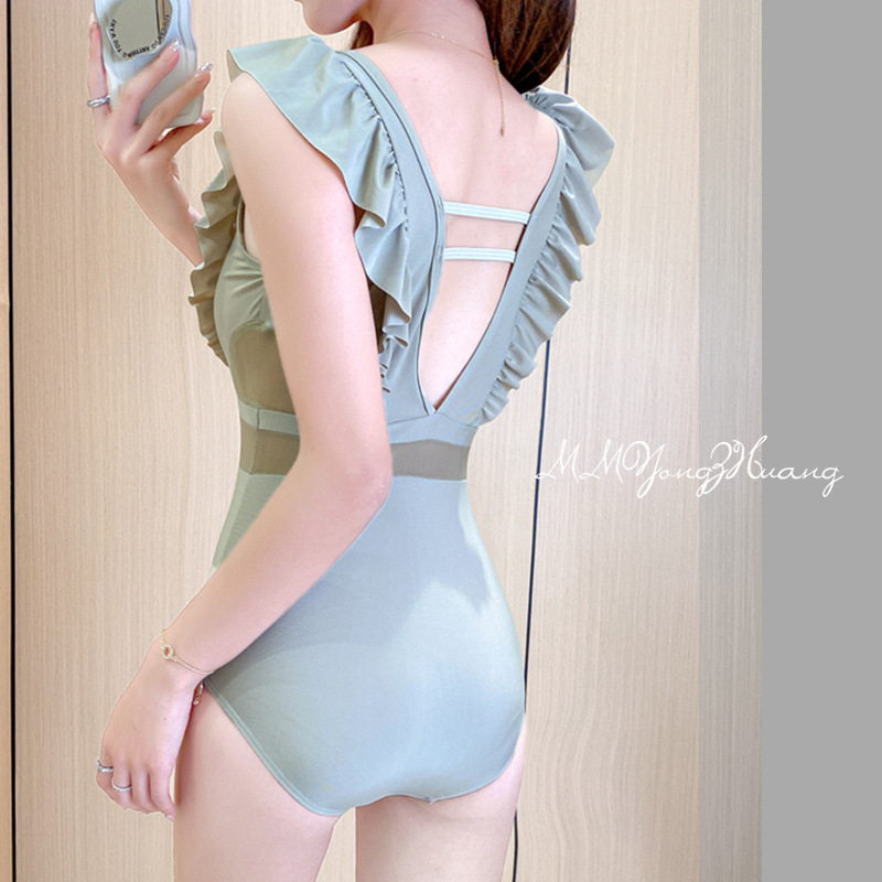 新款游泳衣女连体平角保守显瘦遮肚性感温泉气质学生度假泳装