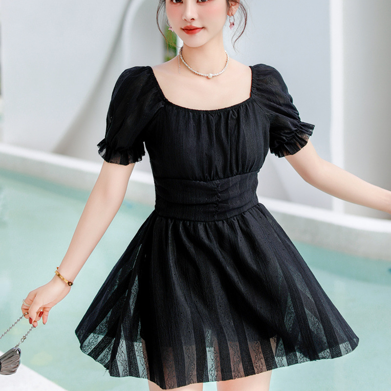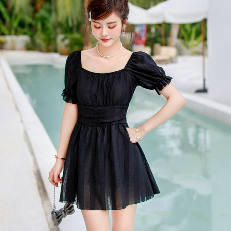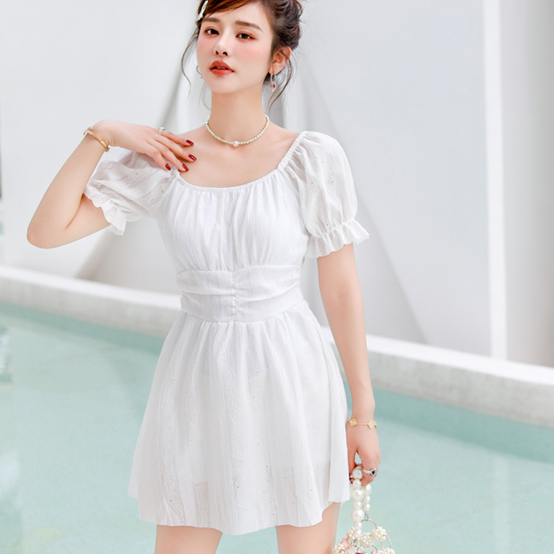 新款游泳衣女仙气连体平角保守显瘦遮肚大码温泉裙式夏季学生泳装