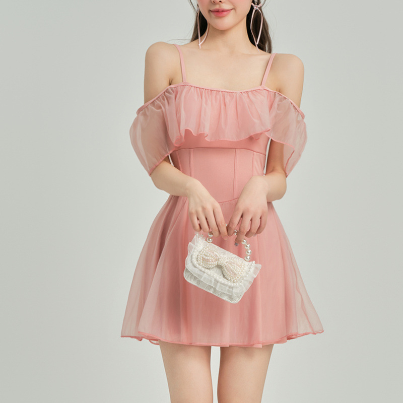 新款仙气游泳衣女连体平角保守显瘦遮肚性感温泉海边度假泳装