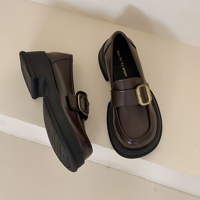 厚底增高小皮鞋女春季新款复古英伦风豆豆鞋一脚蹬软底乐福鞋