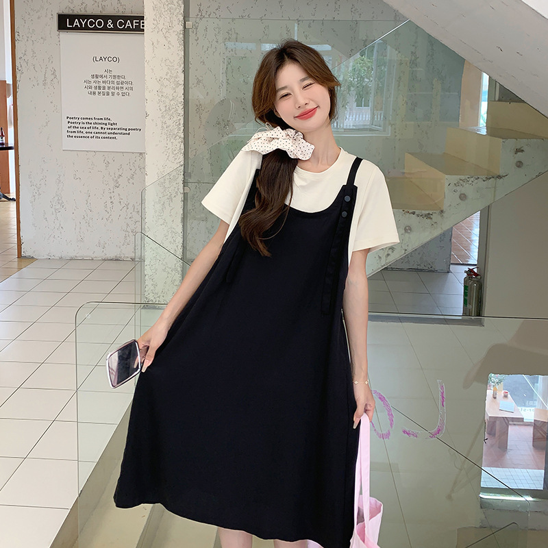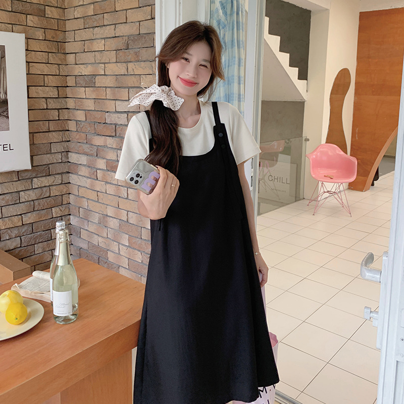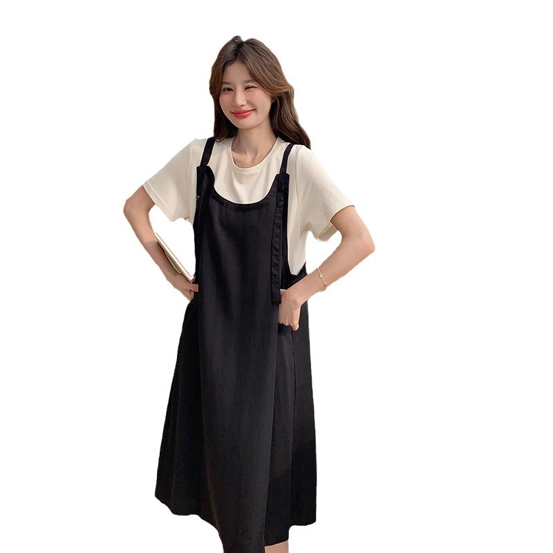 假两件休闲减龄背带连衣裙新款小个子心连衣裙子女夏季学院风