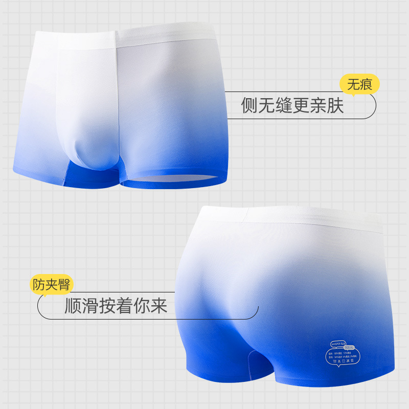 新款渐变冰丝无痕男士内裤冰感透气空调裤潮流男士平角裤