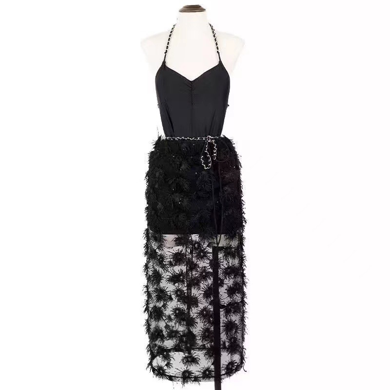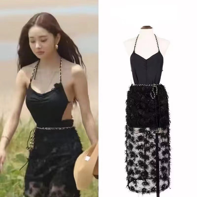 新款法式复古高级感链条显瘦遮肚温泉度假连体泳衣女