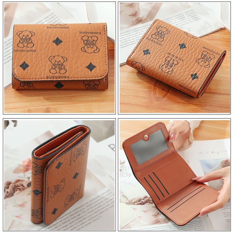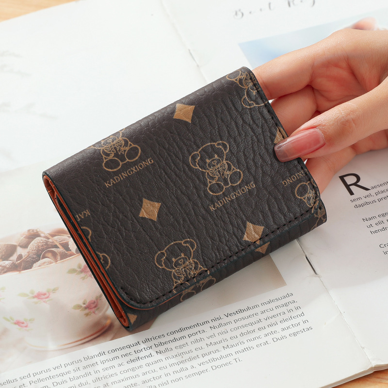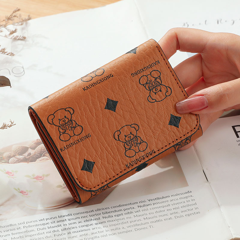 新款潮流卡通印花小熊小三折迷你薄款短款钱包钱夹