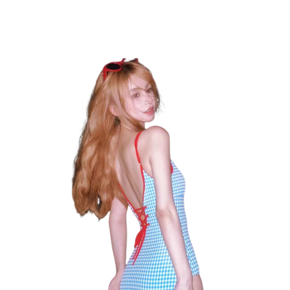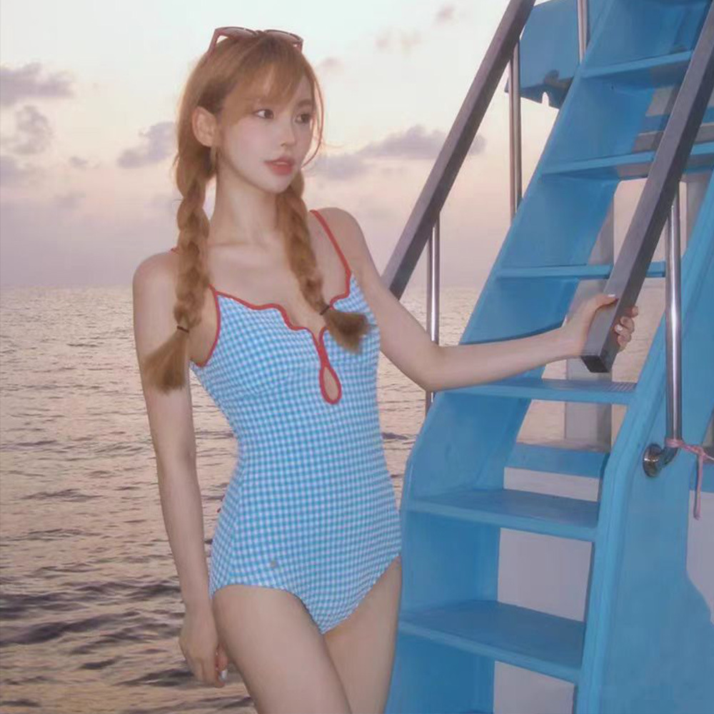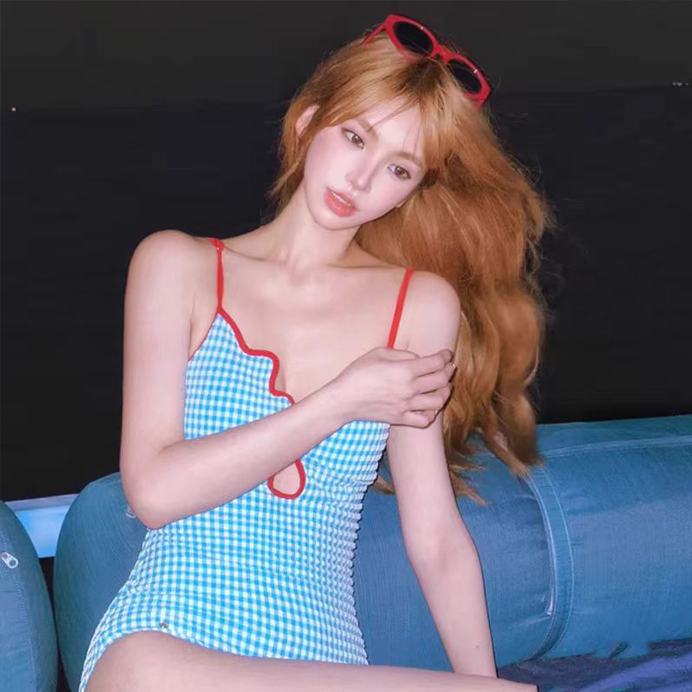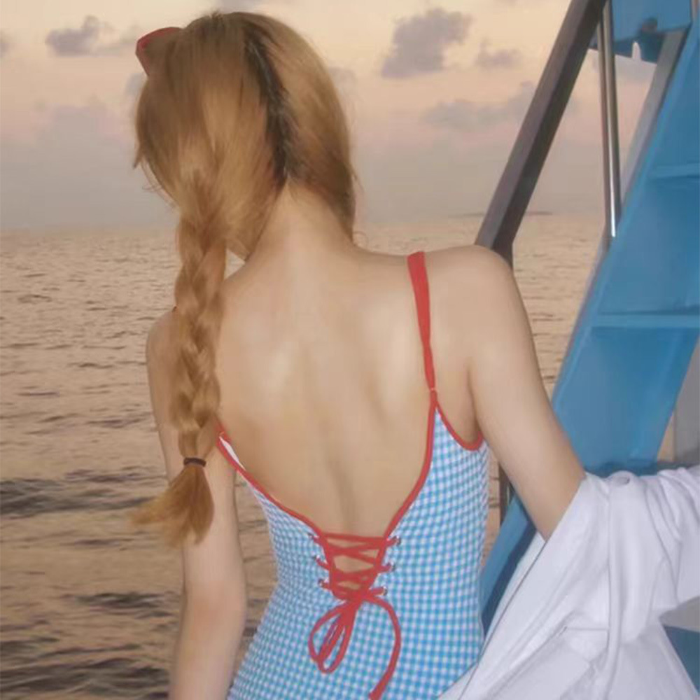 韩版纯欲风吊带连体泳衣女高级感温泉度假露背性感葫芦岛泳装