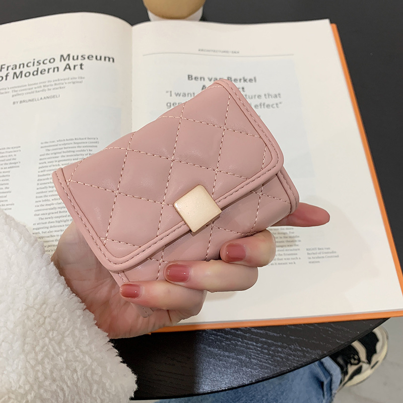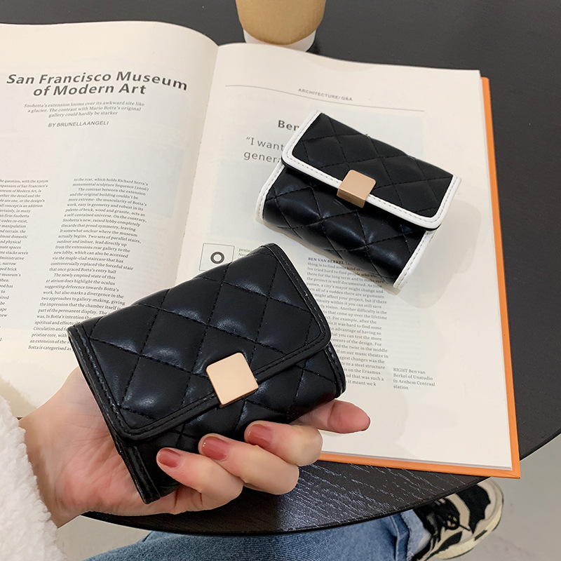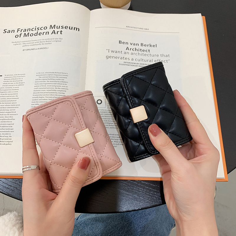 小香风卡包女新款时尚女士卡夹菱格短款证件包零钱卡片包