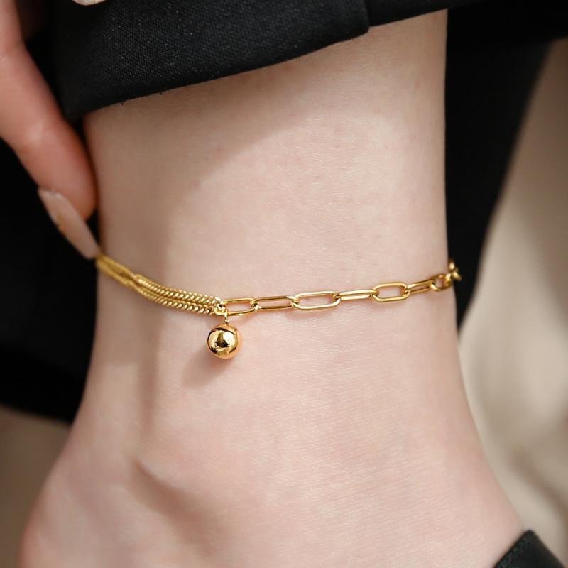 高级感小众金色拼接链条金球脚链女镀18K金不掉色轻奢ins风夏礼物