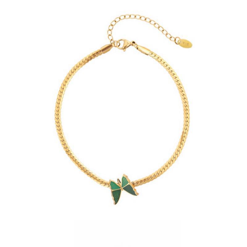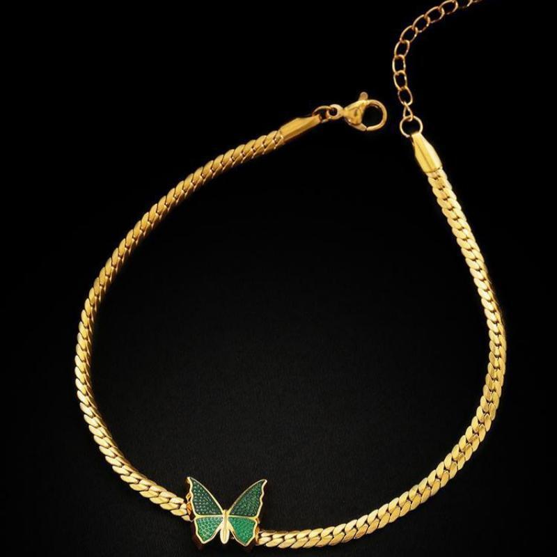 翠绿蝴蝶脚链女潮ins小众高级设计感春夏新款钛钢不掉色扁足链