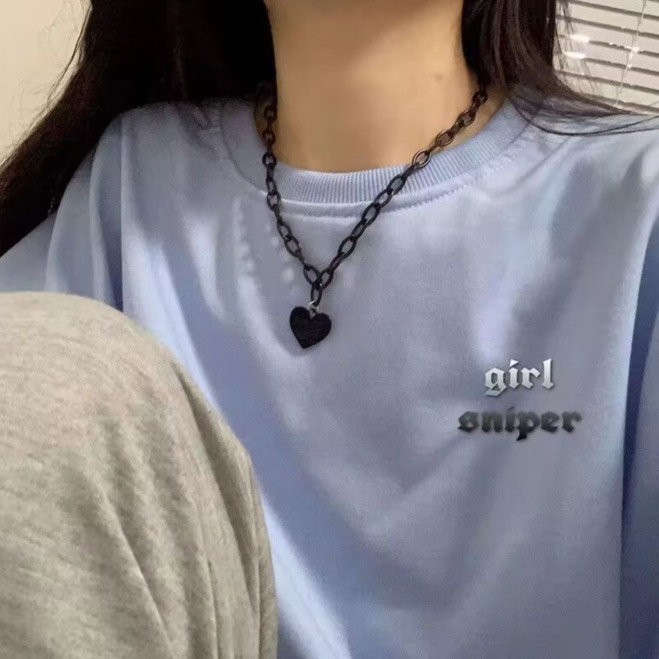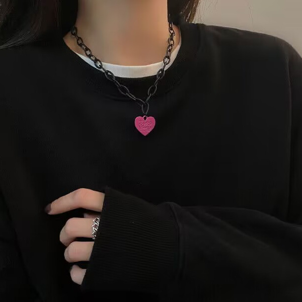 原宿风爱心撞色甜酷辣妹ins黑色爱心字母项链网红嘻哈个性黑色链