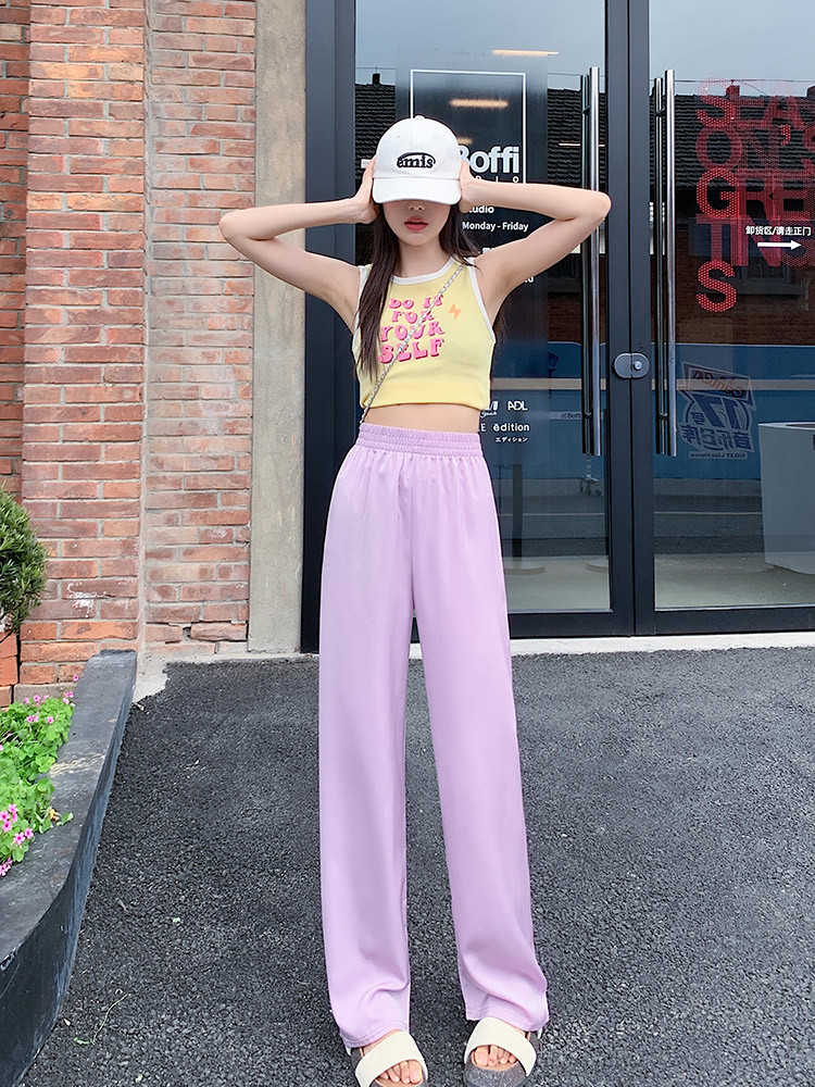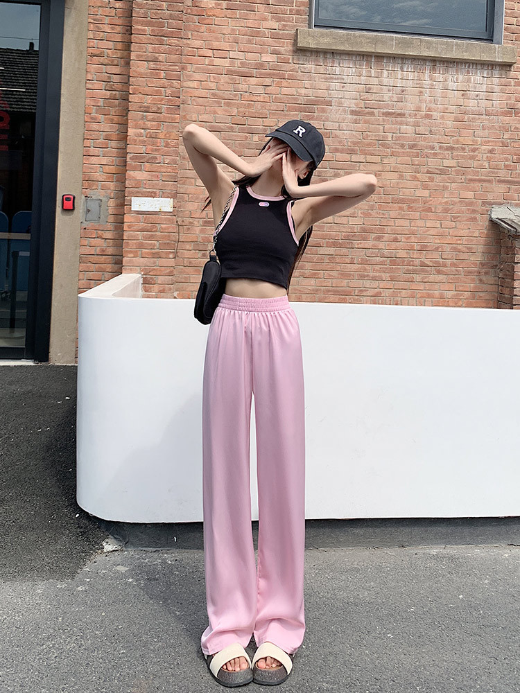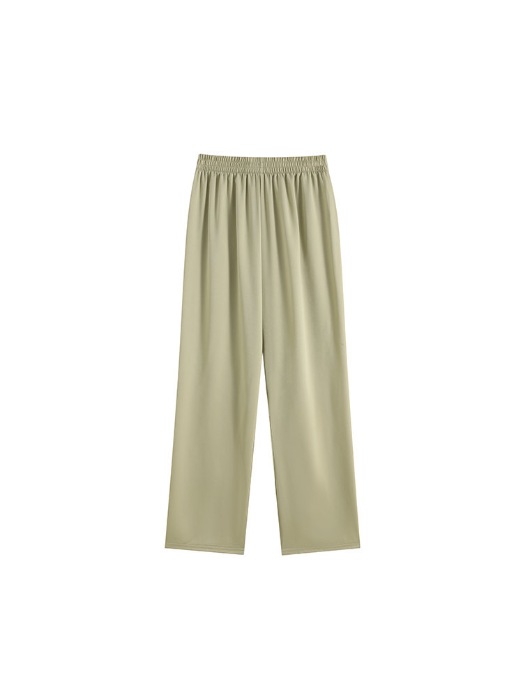 黄绿色醋酸阔腿裤女夏季薄款高腰垂感休闲直筒缎面凉凉防晒冰丝裤