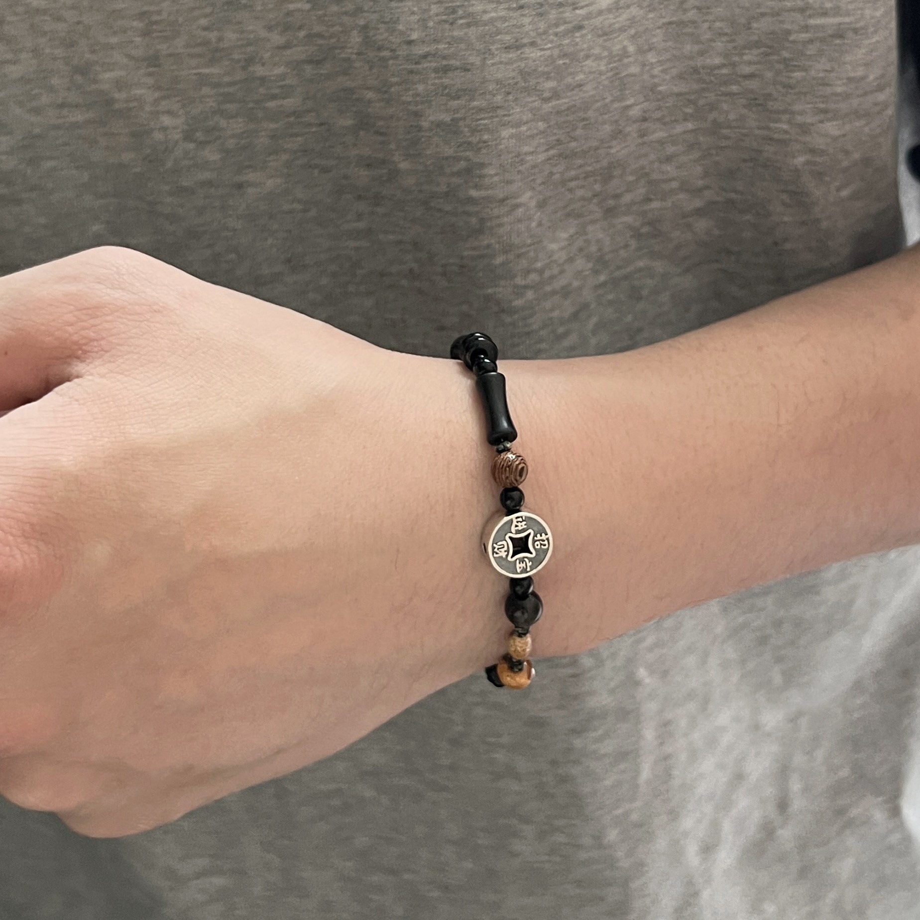 「招财进宝」镀银925黑曜石原创手链新中式情侣七夕礼物