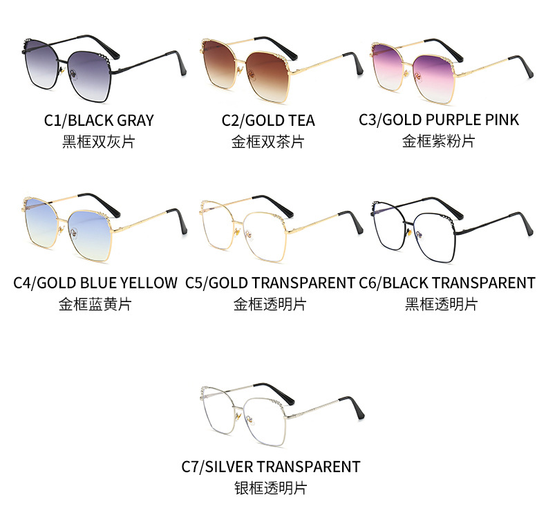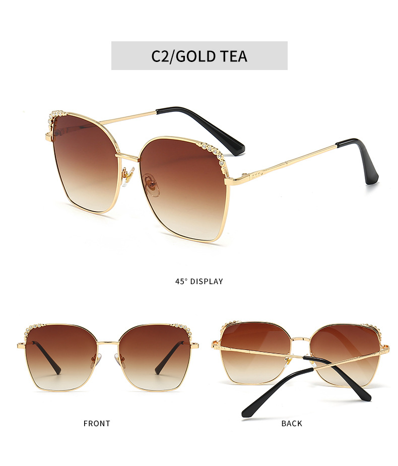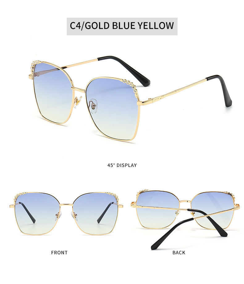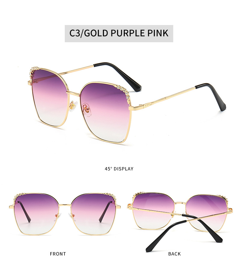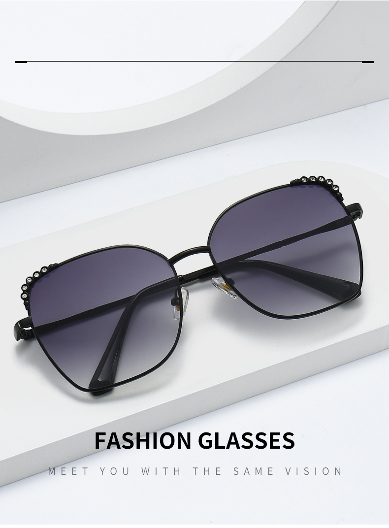 复古大框镶钻眼镜潮墨镜女新款渐变色女士网红猫眼太阳镜
