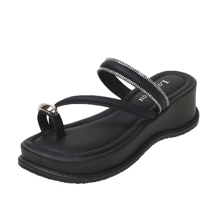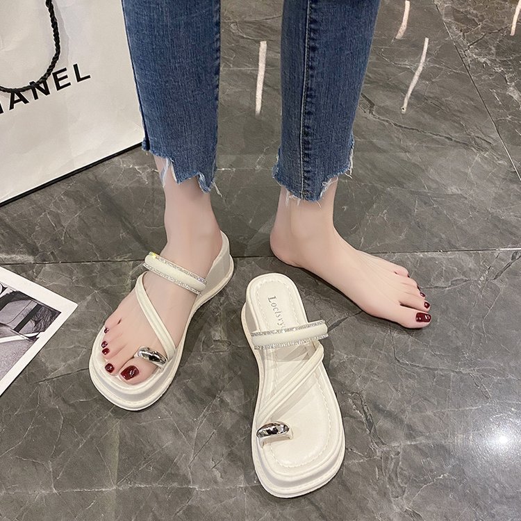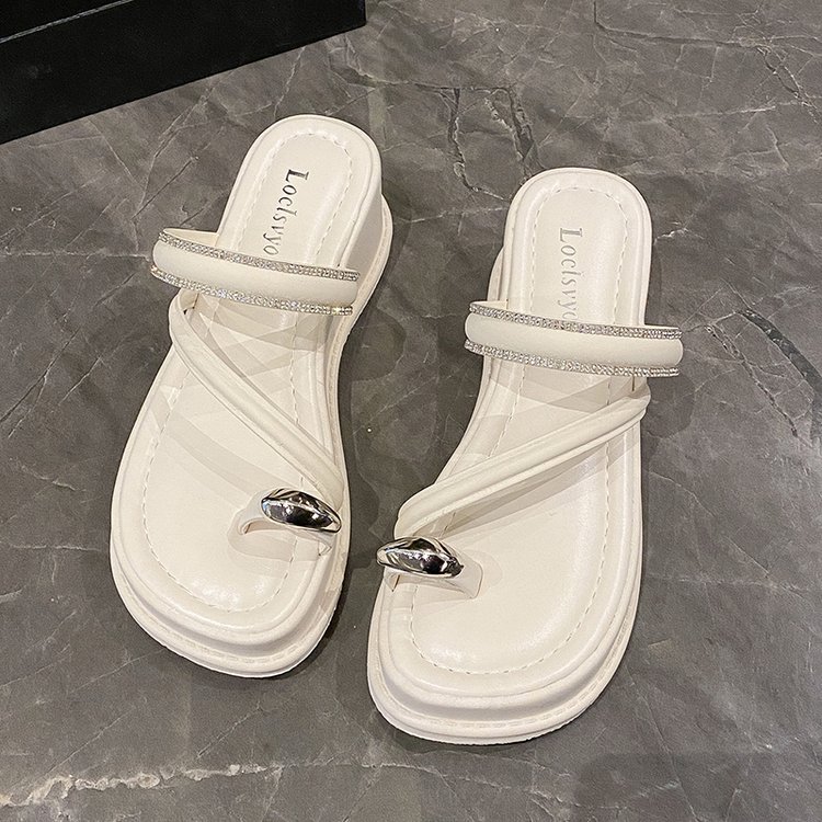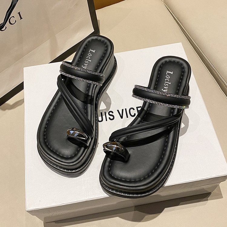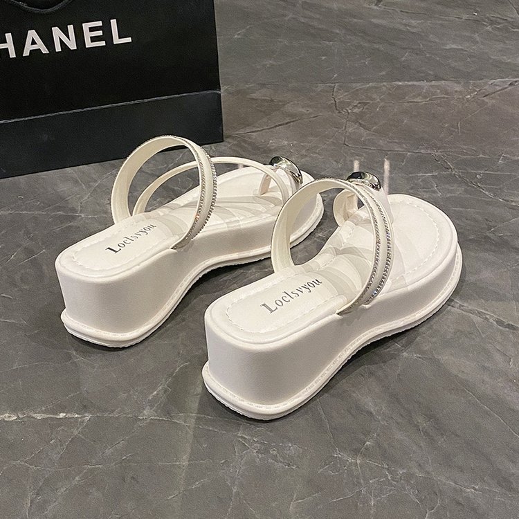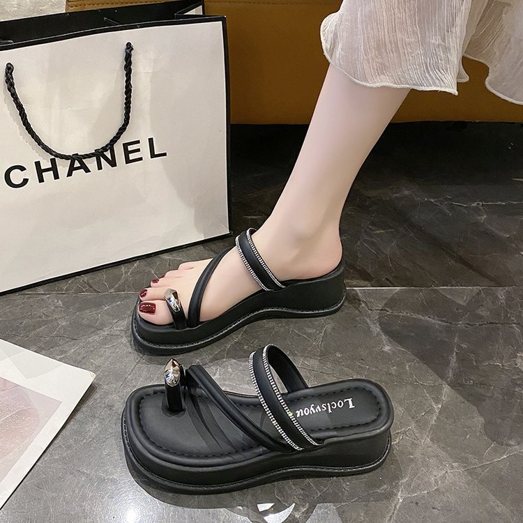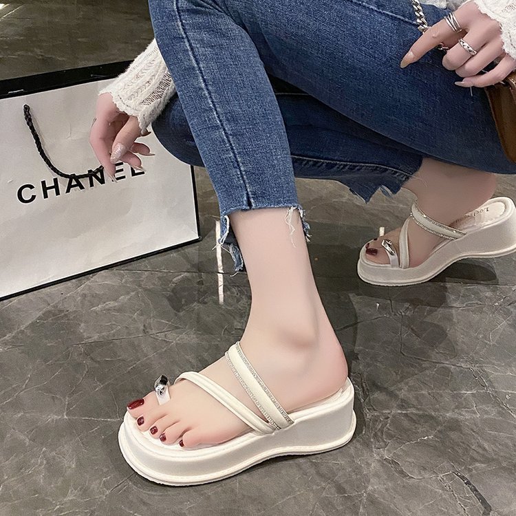 夏季新款松糕厚底夹趾拖鞋女外穿一字带中跟休闲凉拖鞋