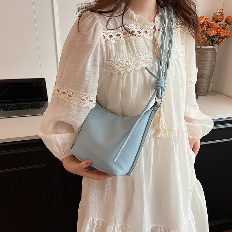 新款女士单肩斜挎包小众磨砂设计马鞍包腋下包小方包