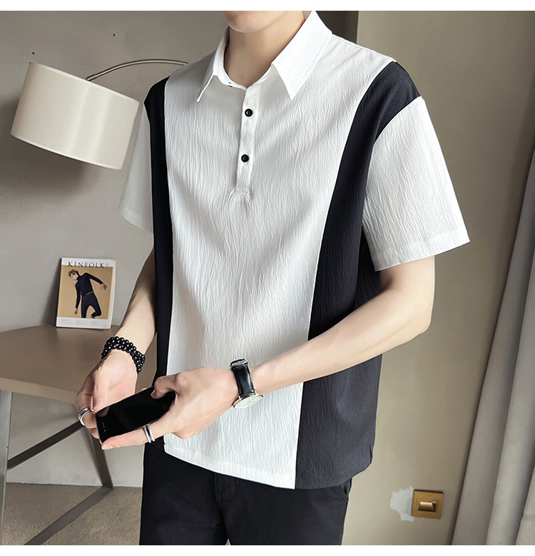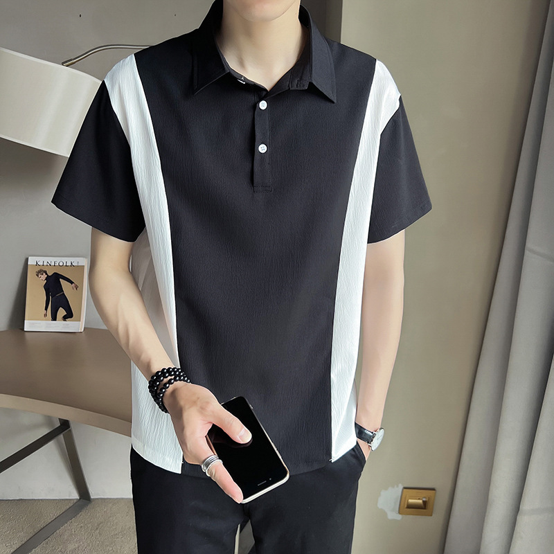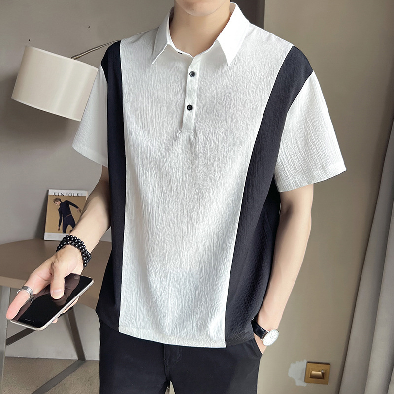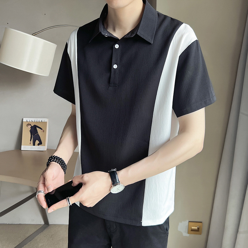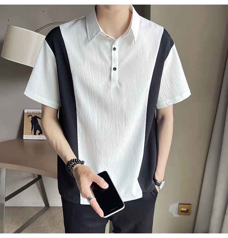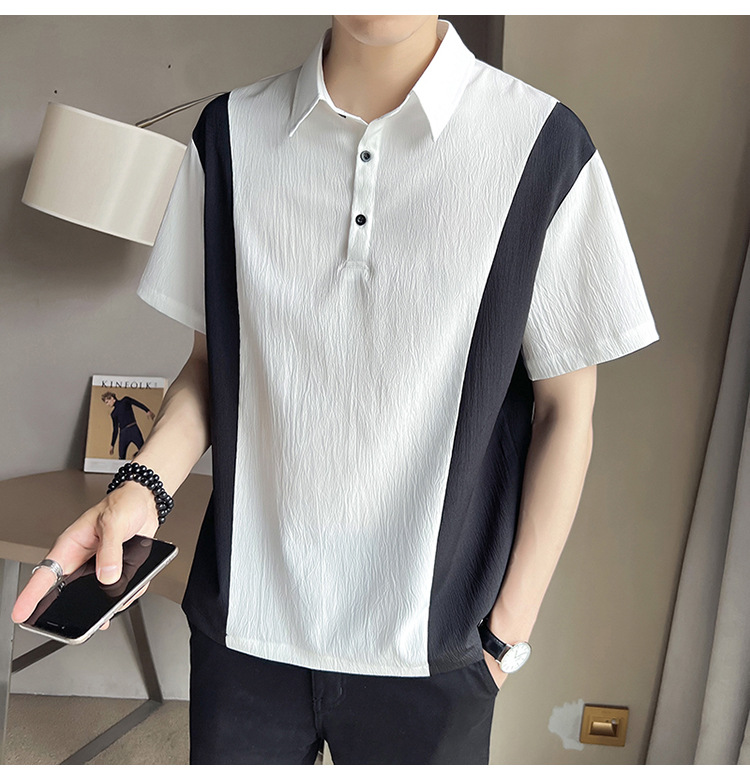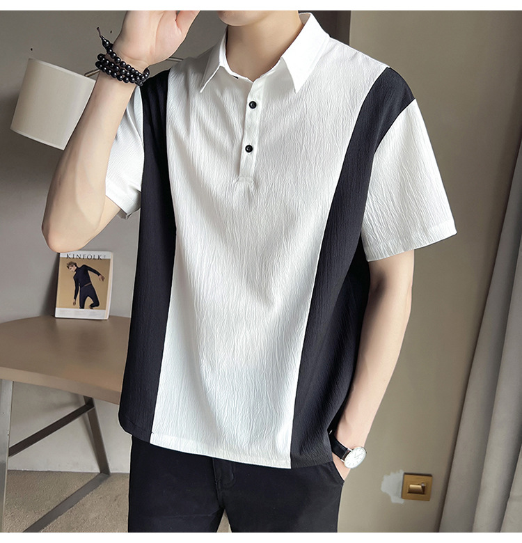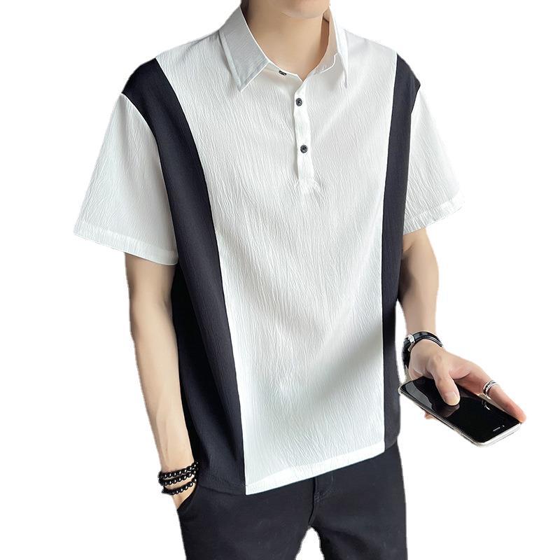 夏季冰丝短袖t恤男ins潮牌翻领polo衫男士休闲半袖上衣潮流痞帅气