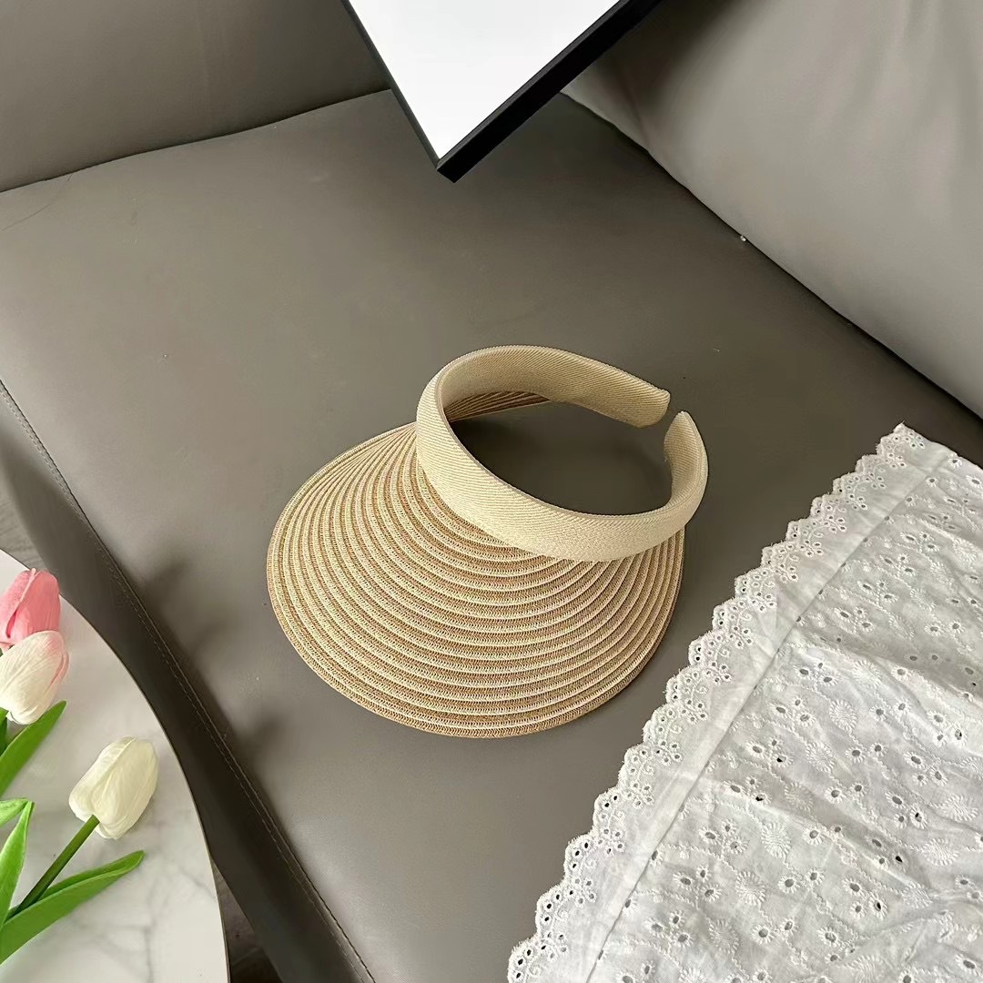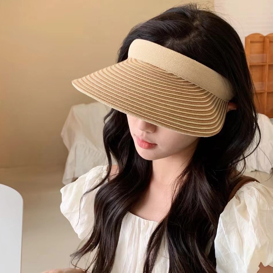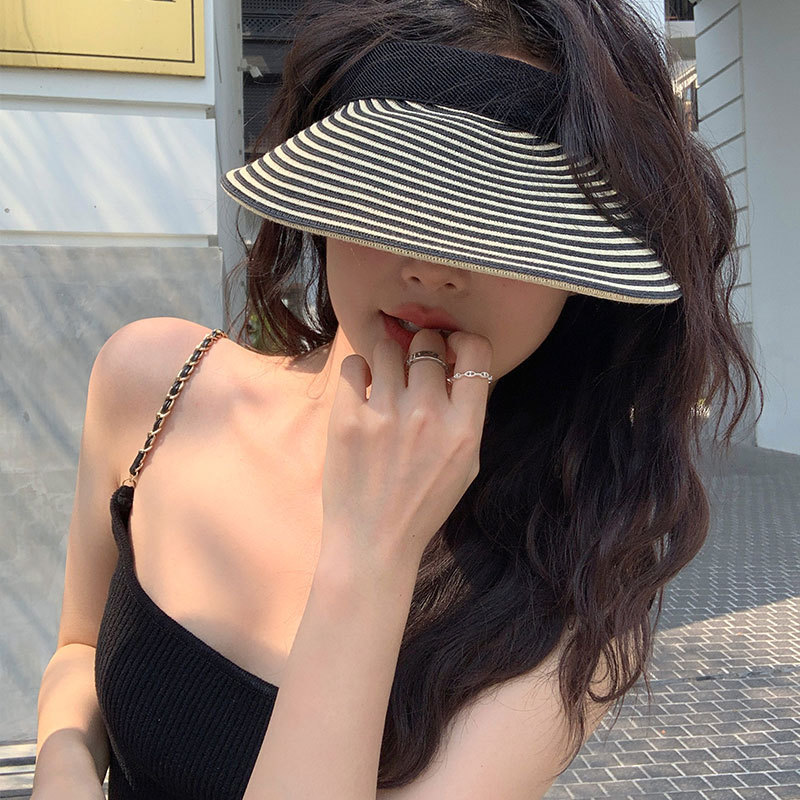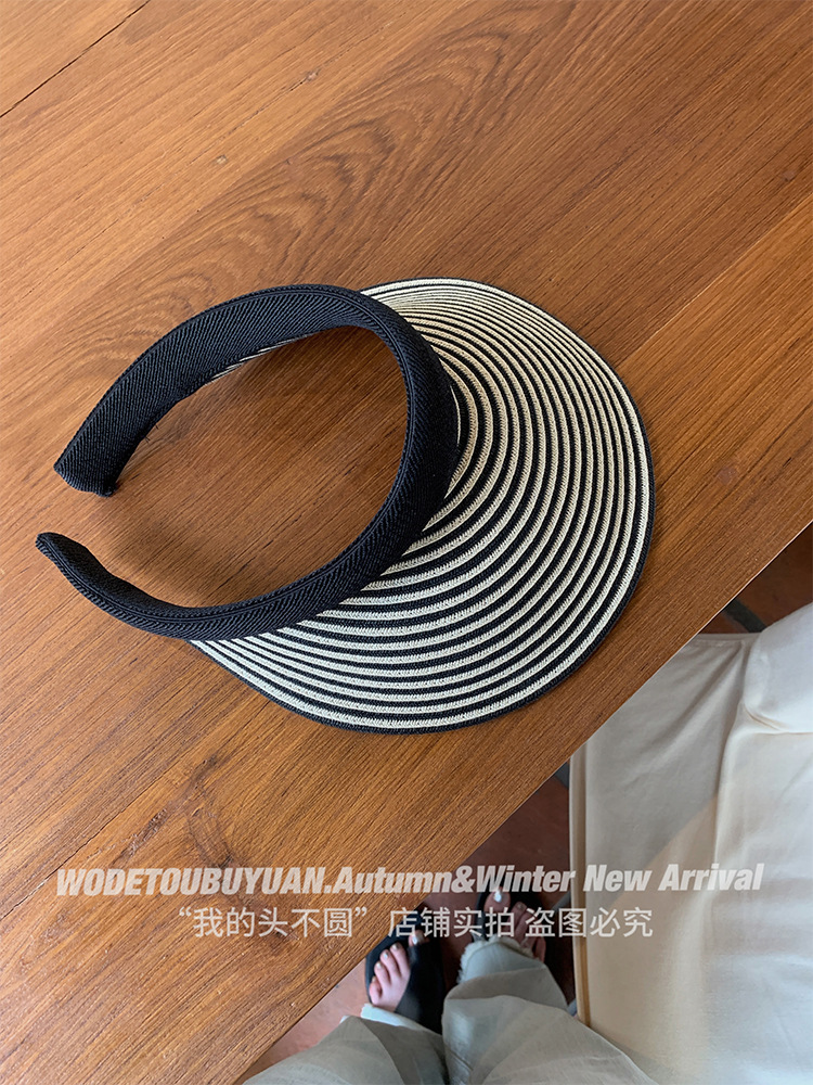 赫本风条纹空顶帽子新款女夏季出游百搭大头围百搭遮阳防晒帽