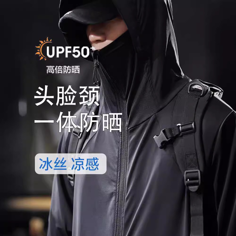 UPF50+户外凉感冰丝防晒衣男夏季大码轻薄透气防紫外线钓鱼防晒服