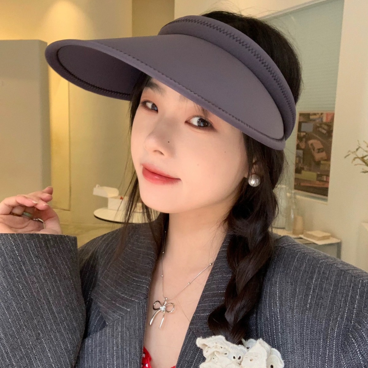 大檐遮脸空顶防晒帽陈奶奶/显脸小 防紫外线太阳帽子女透气遮阳帽