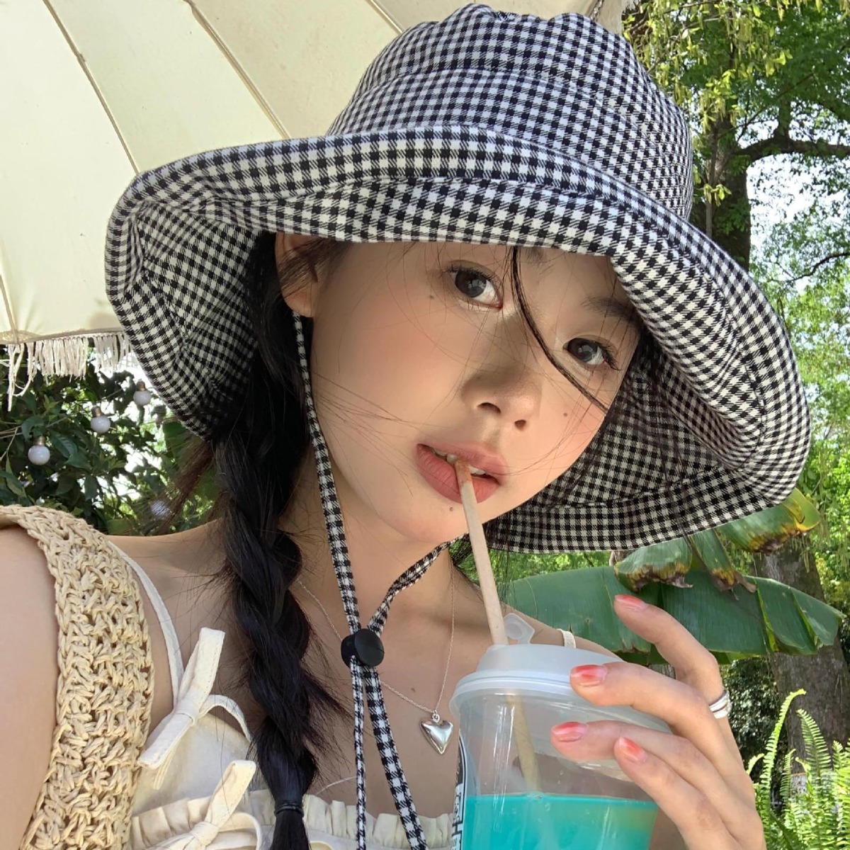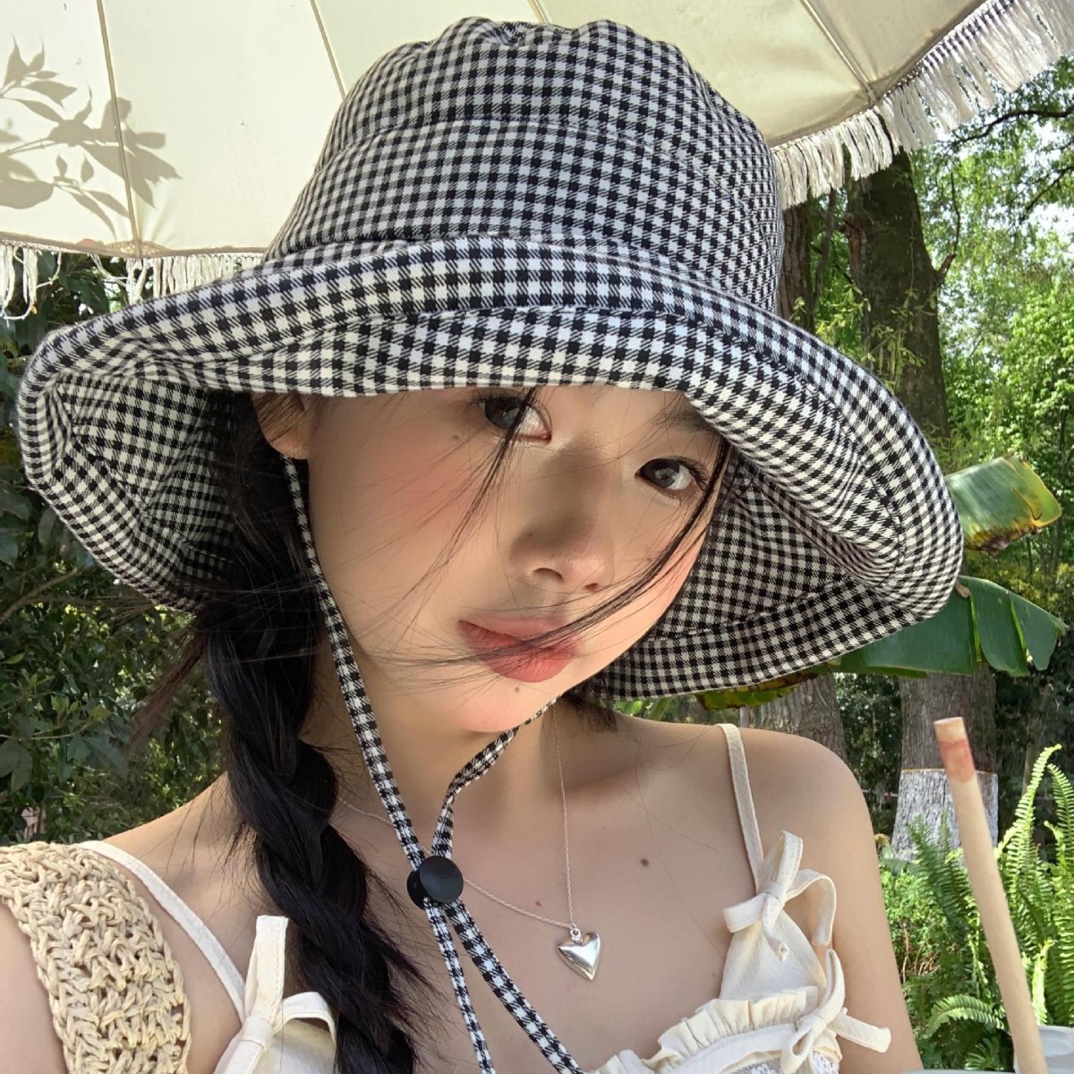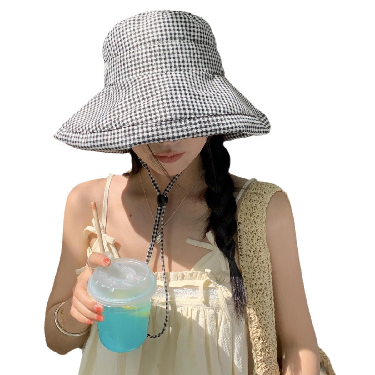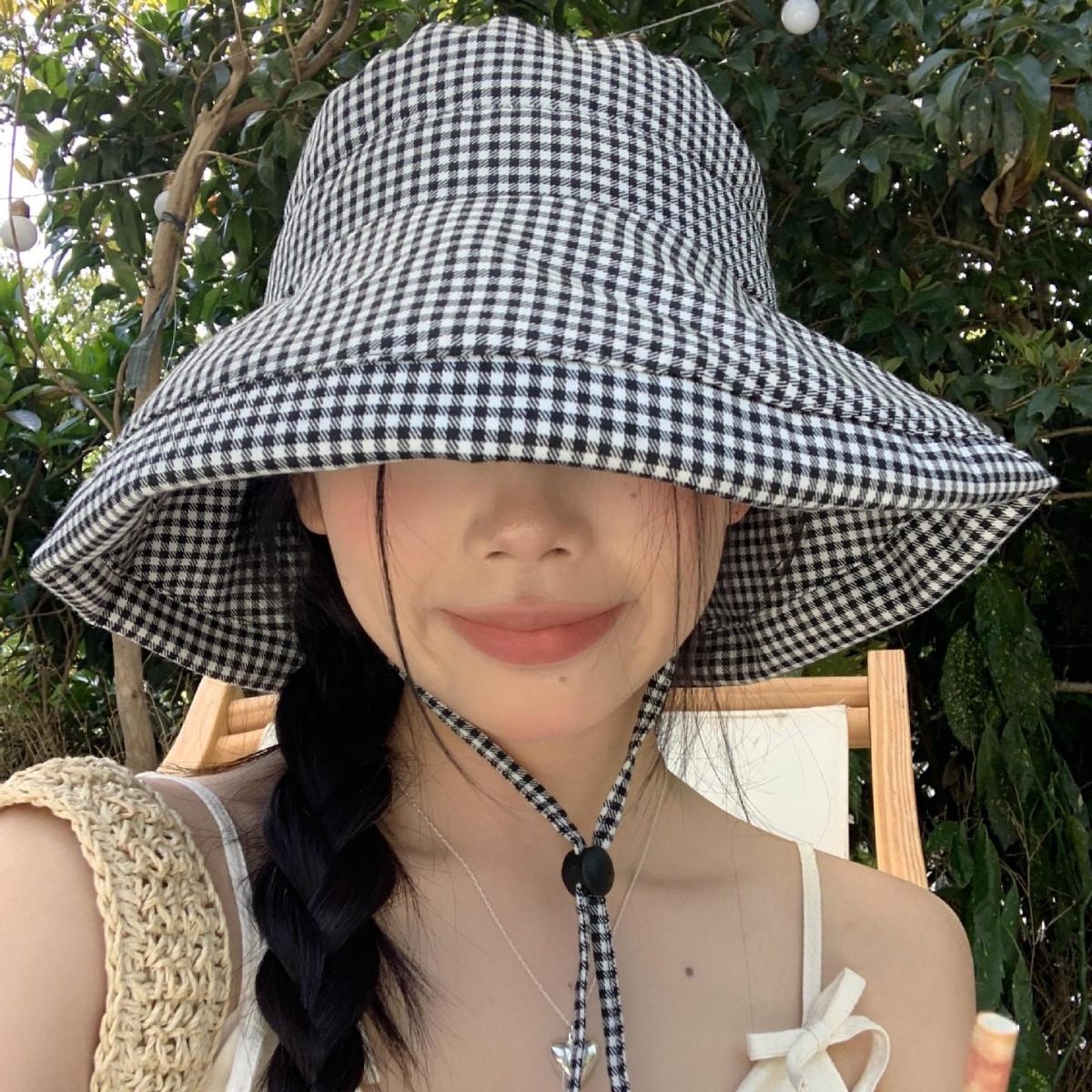 格子大帽檐渔夫帽陈奶奶韩系ins 女韩版春夏款防紫外线防晒遮阳帽