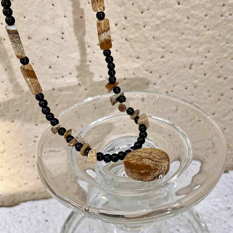 新中式圆片吊坠项链不规则黑色水晶串珠小众设计天然石锁骨链