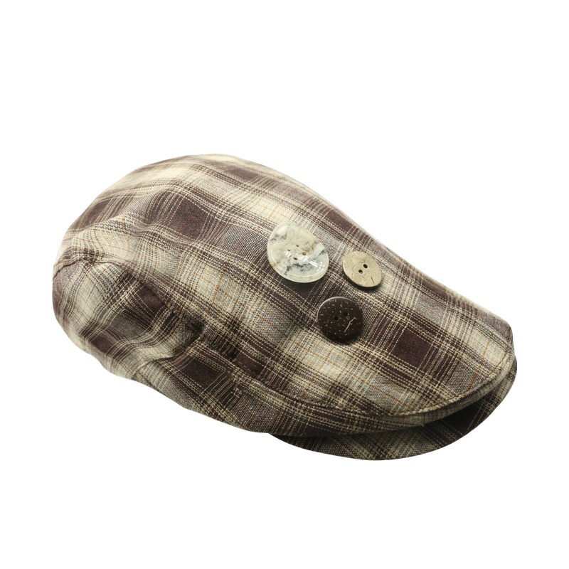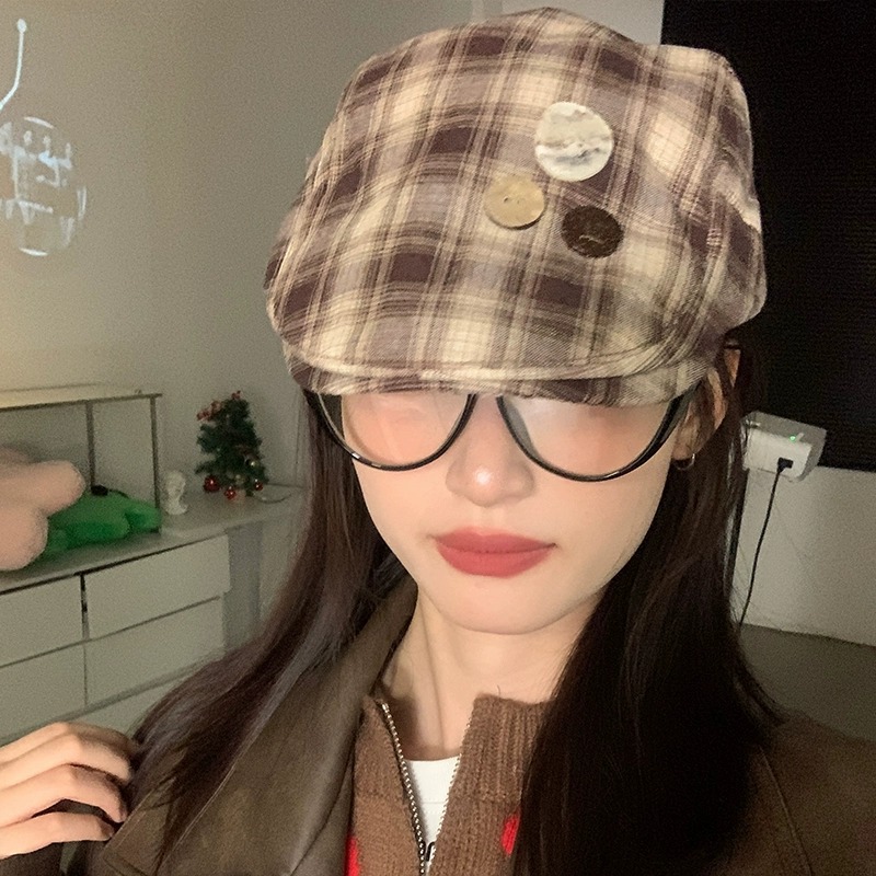 美式复古格纹前进帽子女大头围日系牛仔画家帽英伦风报童帽显脸小
