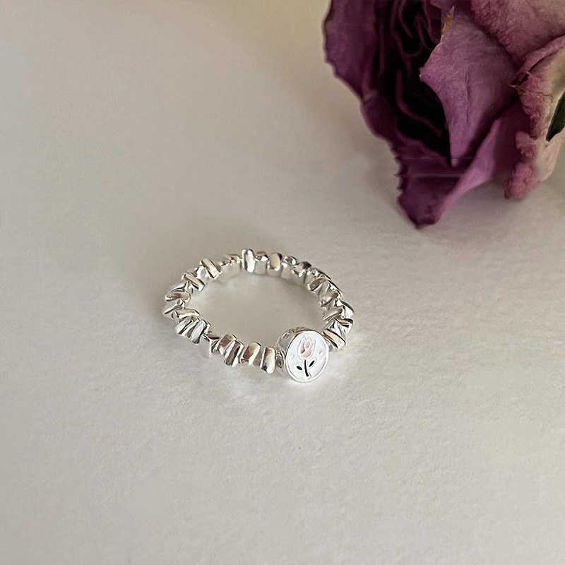 个性小众设计郁金香碎银几两银子戒指女ins冷淡风轻奢时尚款指环