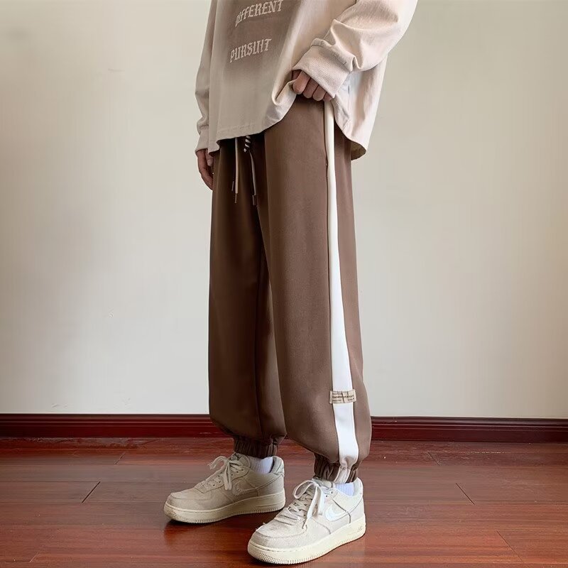 裤子男秋季新款拼接撞色束脚运动卫裤美式复古重磅百搭宽松休闲裤