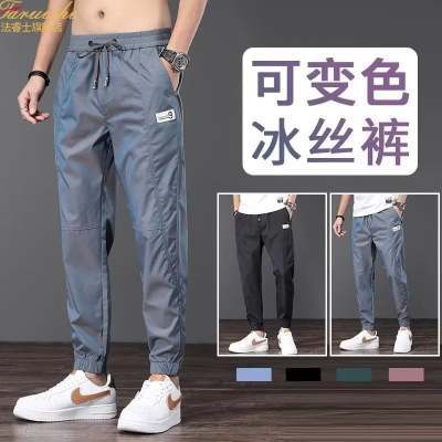 冰丝休闲裤男士夏季薄款裤子宽松束脚夏天空调速干运动男款工装裤