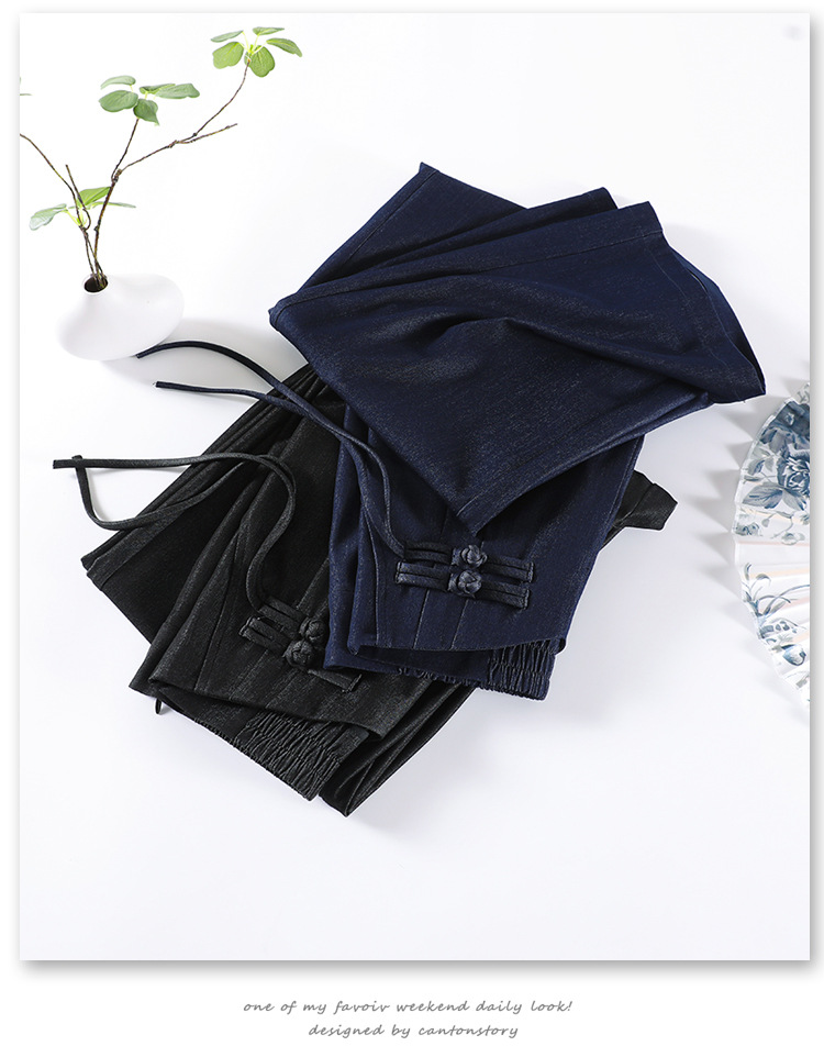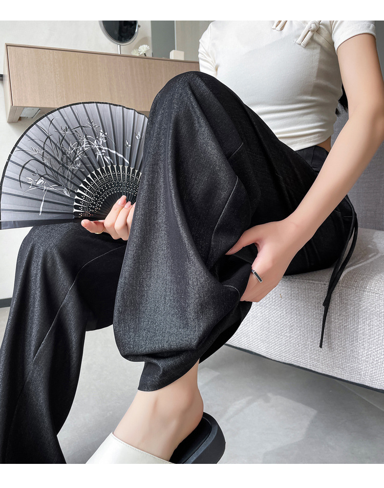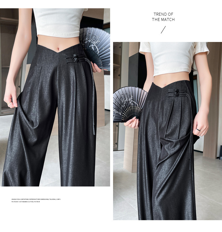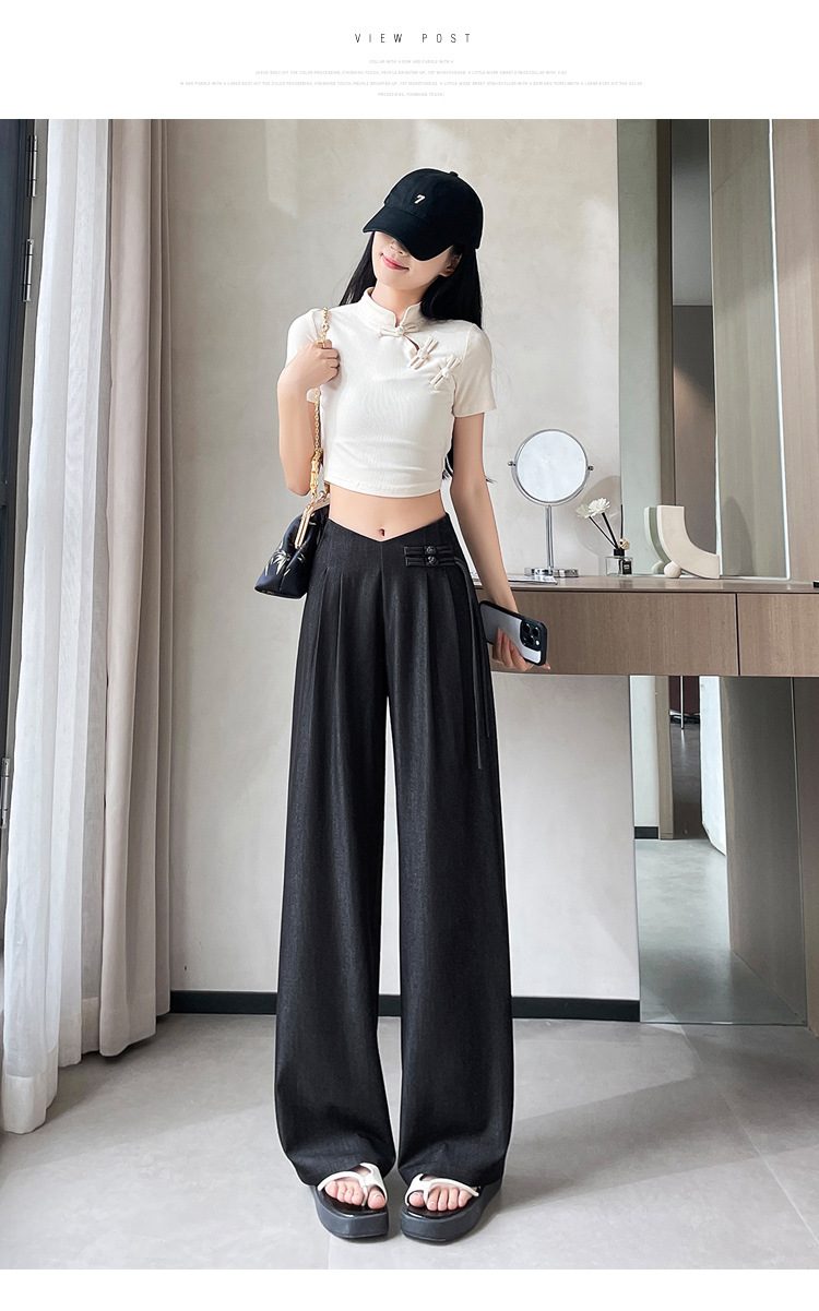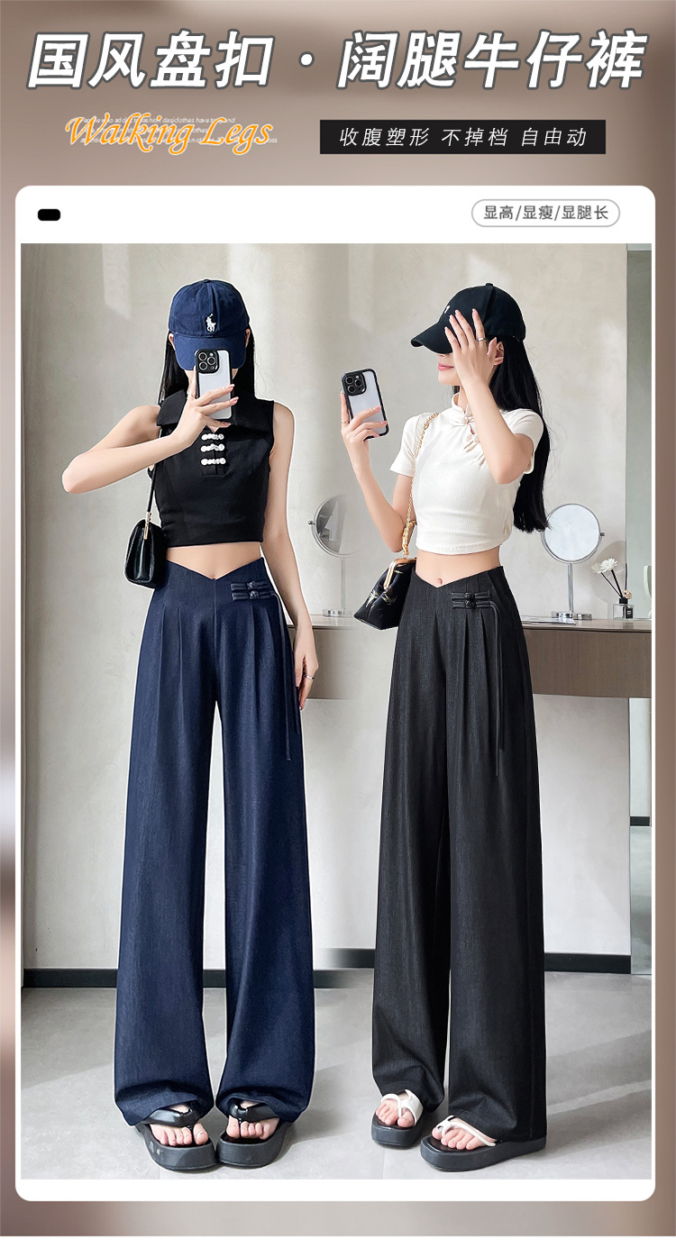 新中式天丝牛仔裤女夏季薄款高腰垂感国风盘扣窄版直筒西装阔腿裤