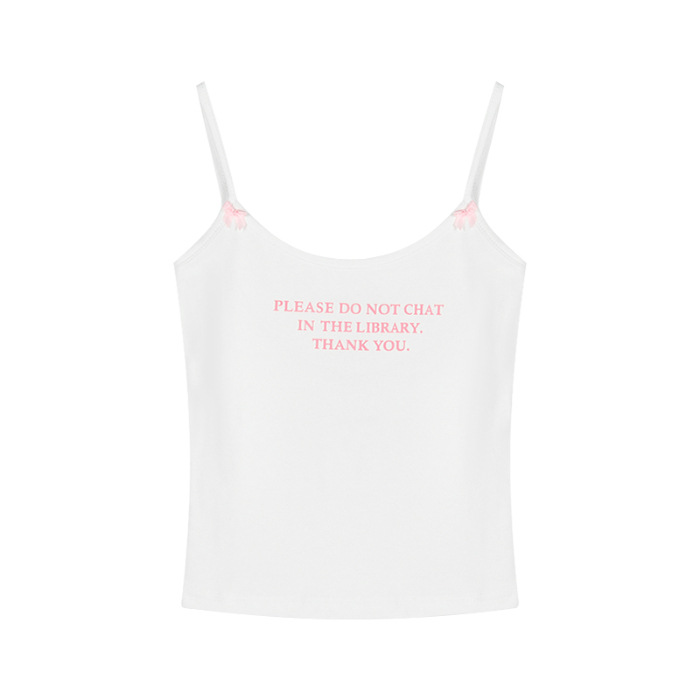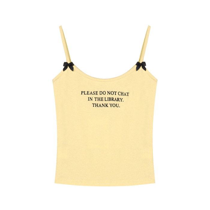 可爱英文印花甜美吊带背心女带胸垫显瘦外穿蝴蝶结设计款打底上衣