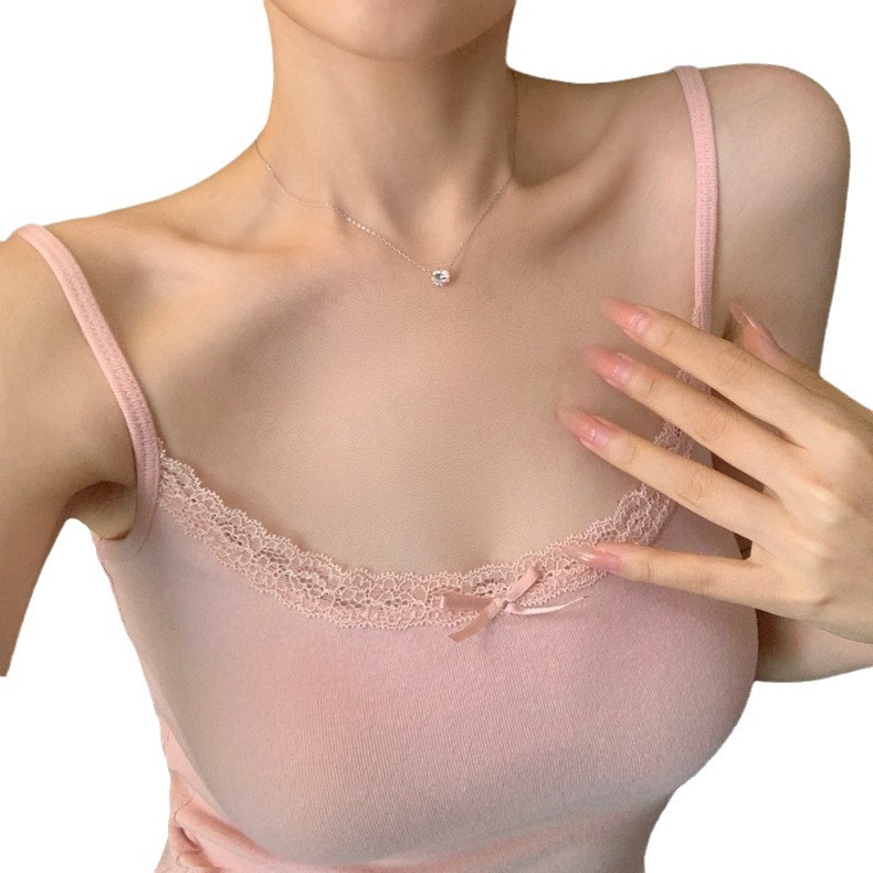 纯欲修身蕾丝蝴蝶结吊带舒适百搭打底纯色背心女