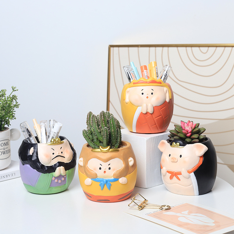 卡通树脂学生文具收纳笔筒工艺品创意搞笑办公桌面西游记花盆摆件