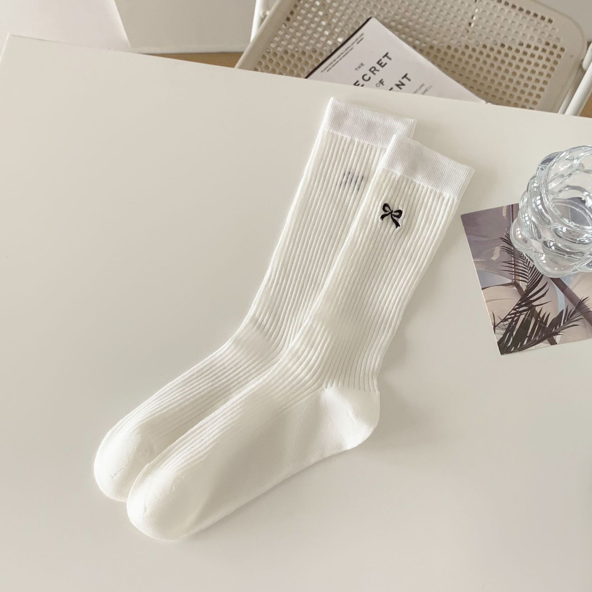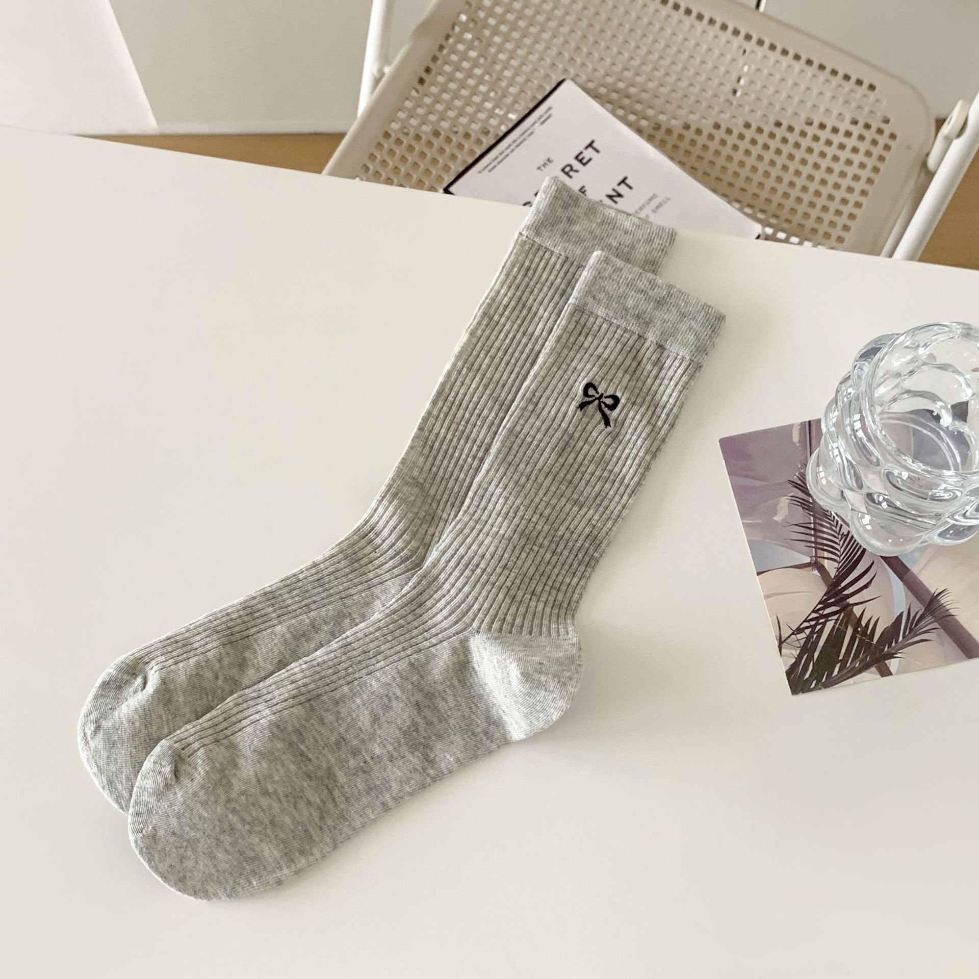 ins蝴蝶结超薄款女中筒纯色棉质透气网眼中筒袜透气堆堆袜
