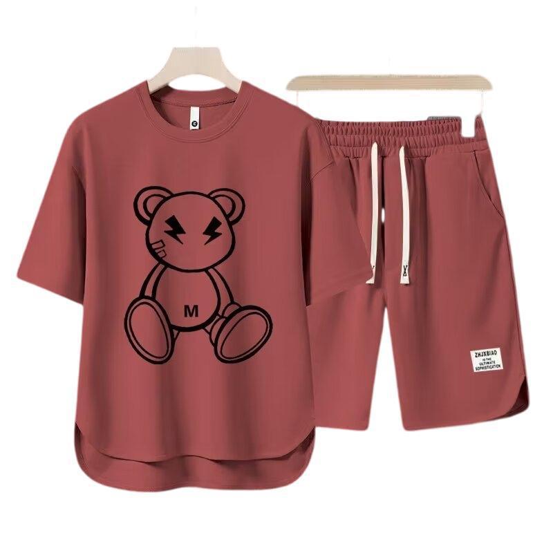 华夫格休闲套装男生夏季潮牌短裤短袖搭配帅气青少年时尚运动套装