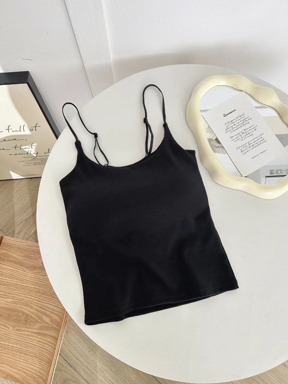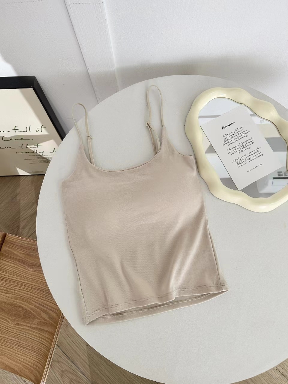 纯色吊带背心女夏季带固定胸垫外穿上衣无钢圈细带打底长款薄抹胸