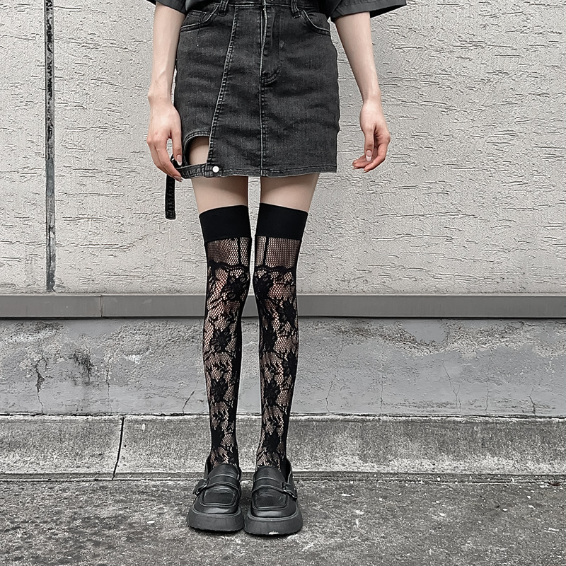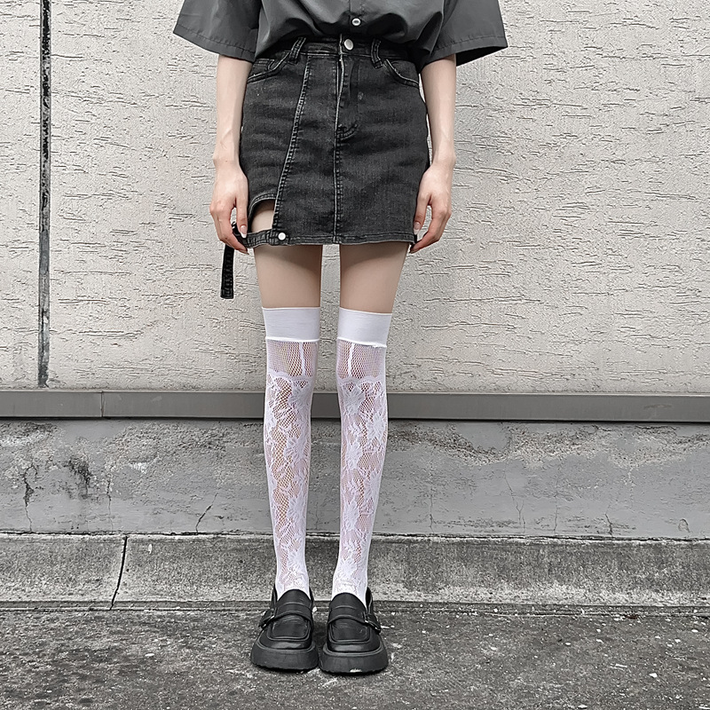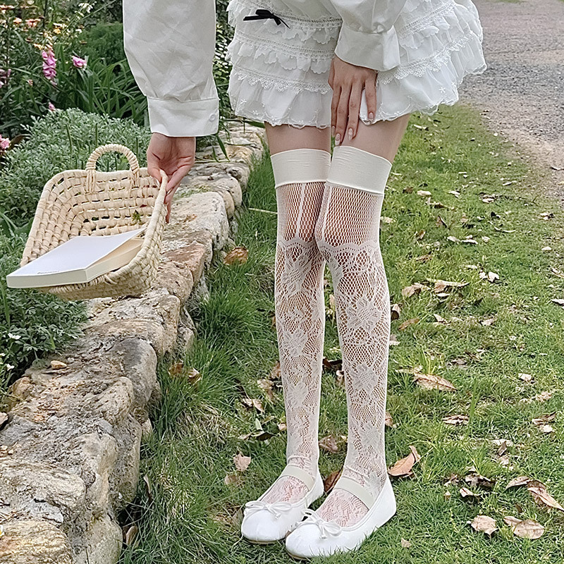 蕾丝长筒袜女甜美Lolita过膝袜日系洛丽塔少女袜白色高筒大腿袜子
